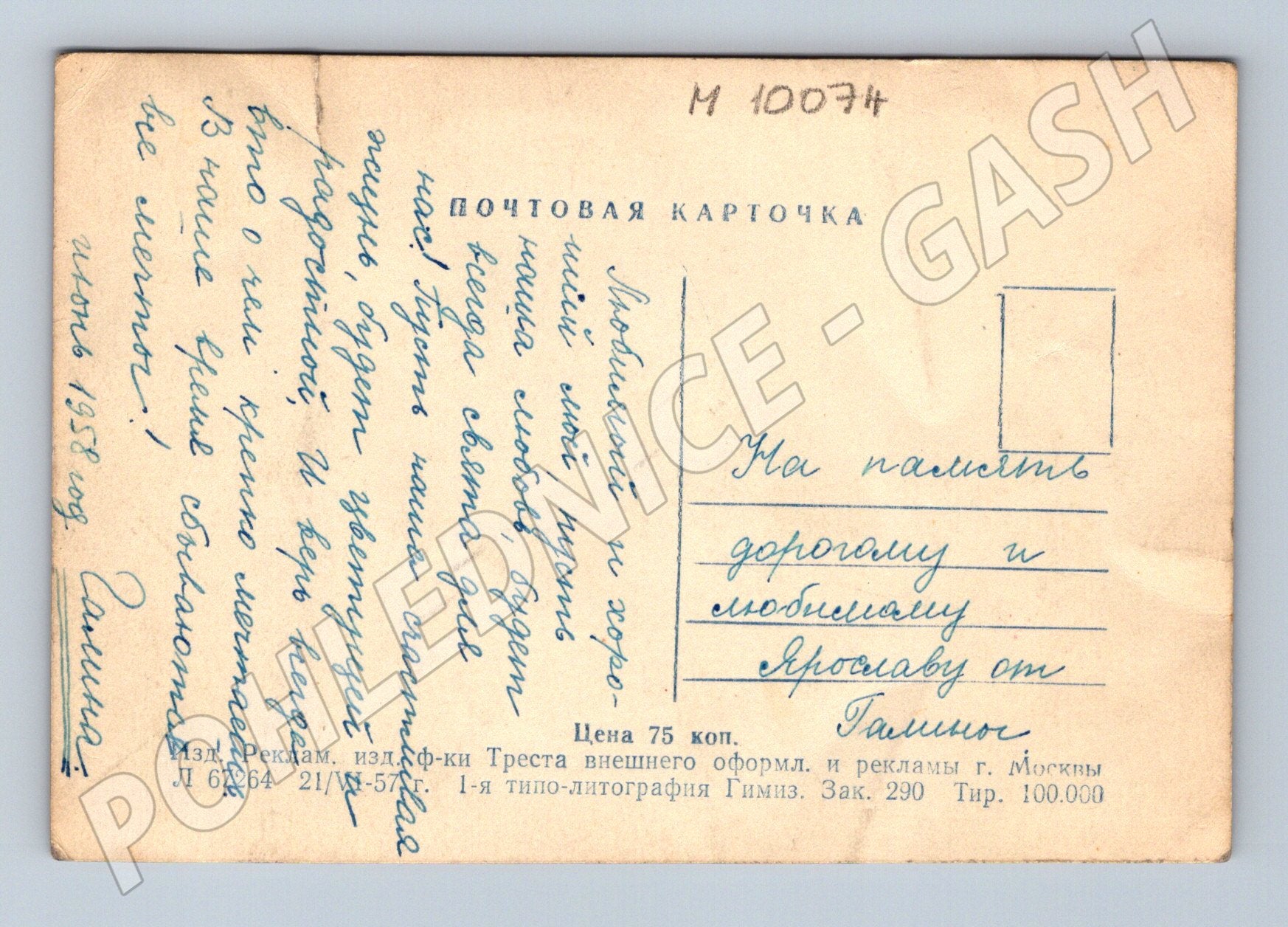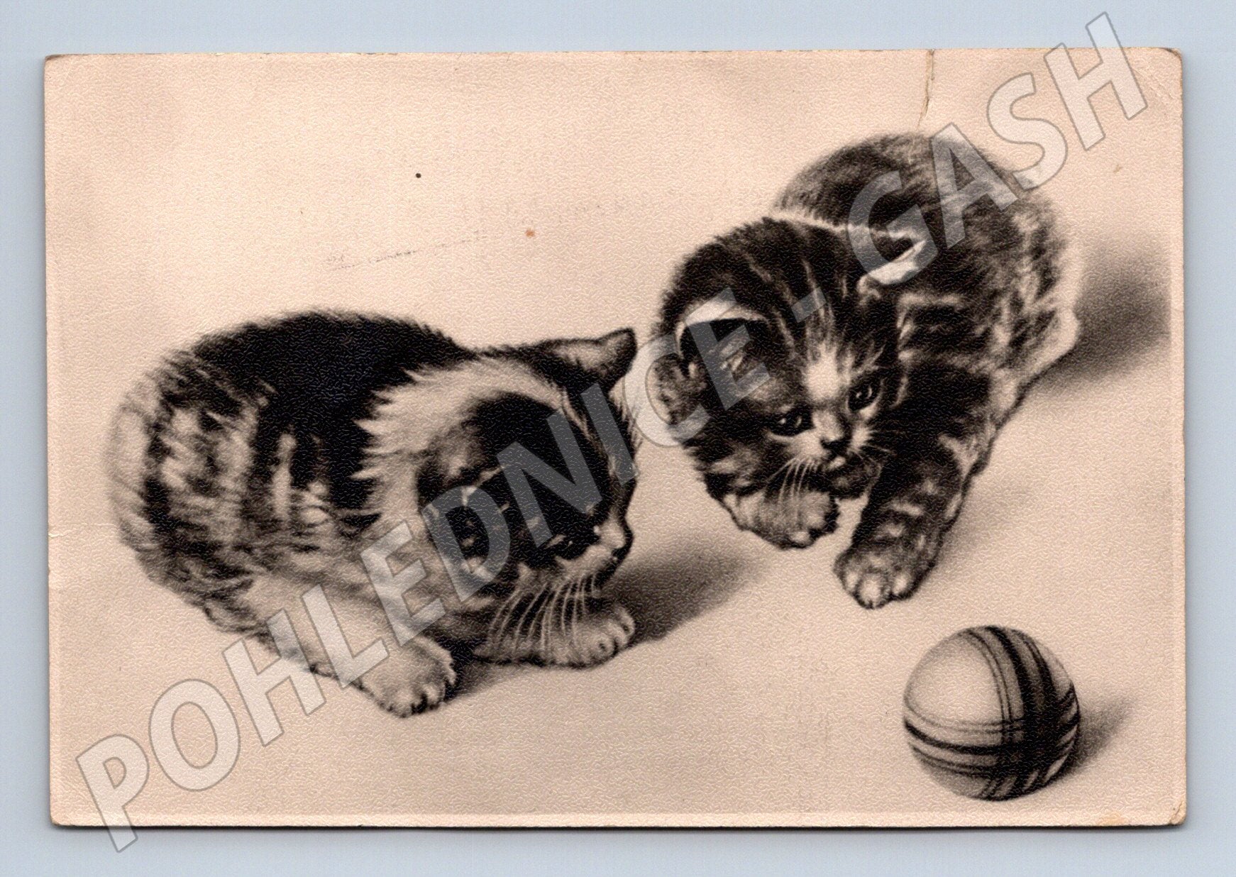 Starší černobílá pohlednice s motivem dvou koťat hrajících si s míčkem. Jedná se o ruskou pohlednici s ručně psaným textem na zadní straně, datovaným do roku 1958. Pohlednice nese drobné známky stáří a opotřebení, zejména ohyby v rozích. Zajímavý sběratelský kousek s historickou a sentimentální hodnotou. Rozměry klasického formátu. Originální dárek pro milovníky koček nebo retro korespondence.