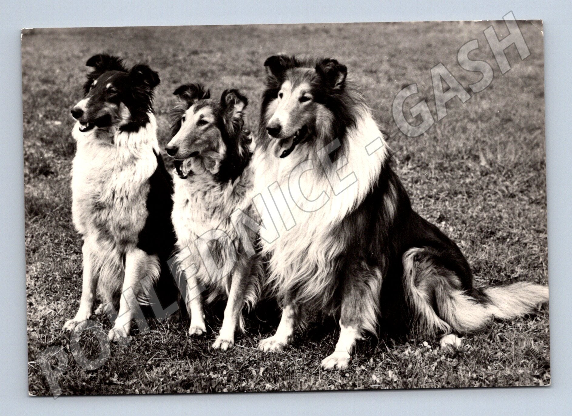 Nabízím originální černobílou pohlednici z roku 1965 se zobrazením čtyř skotských ovčáků (kolie) na louce. Na zadní straně je uveden popis Colie – zvaná též skotský ovčák , foto Vladimír Soukup, vydal PRTISK, Praha 1965. Pohlednice je neprošlá, ve velmi dobrém, sběratelském stavu. Perfektní doplněk do sbírky pohlednic se psy, zejména pro milovníky plemene kolie.
