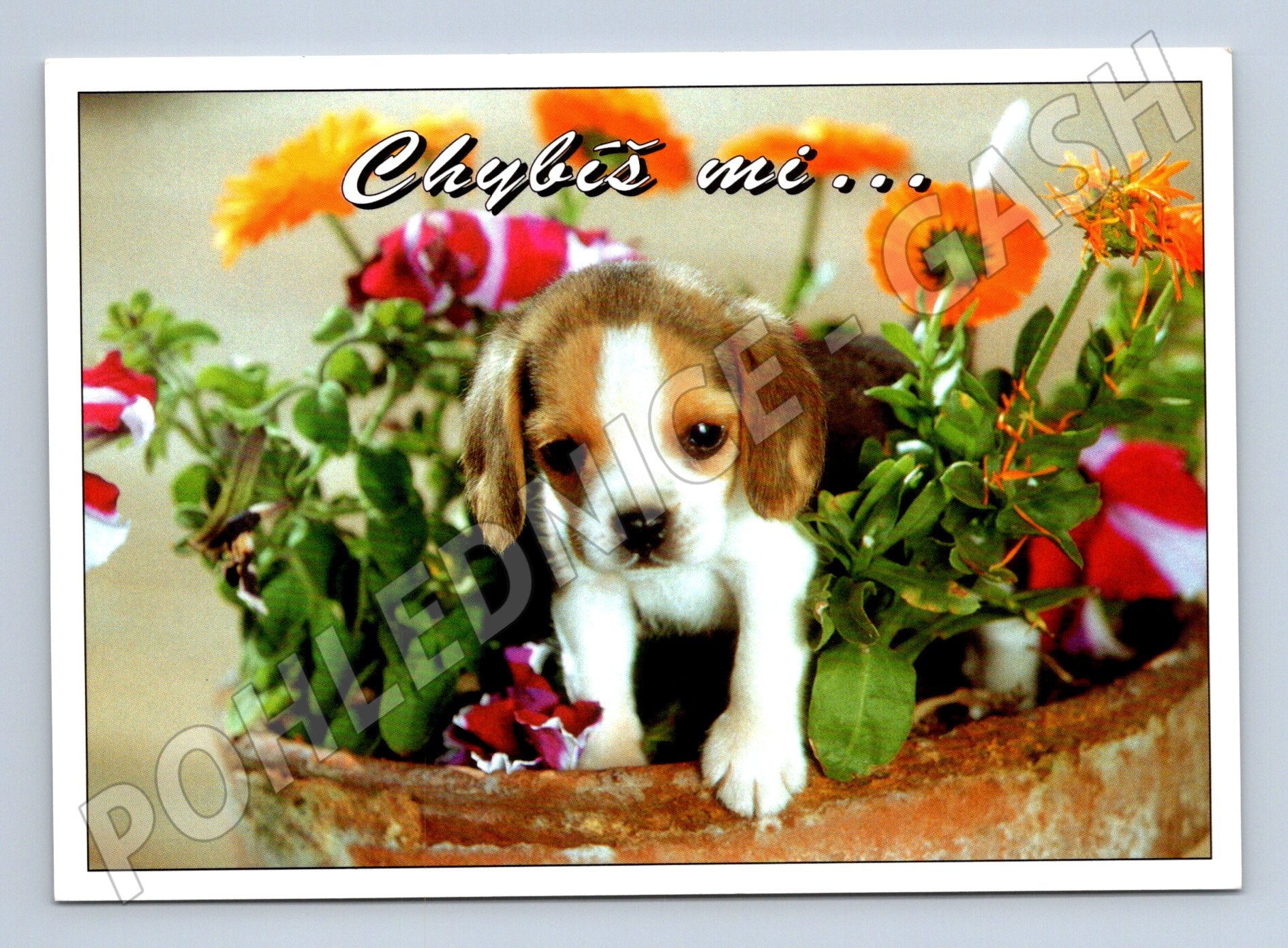 Pohlednice štěně pes Chybíš mi ve květináči (M10082)