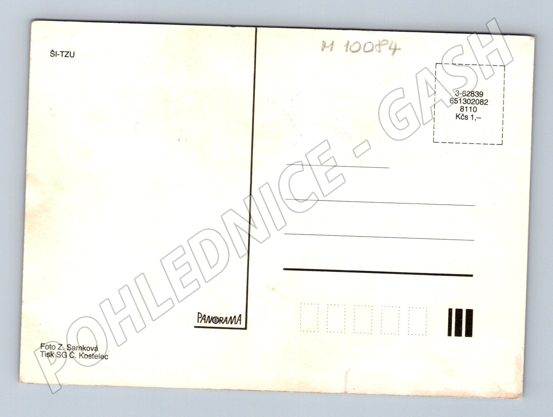 Nabízím originální pohlednici s motivem dvou psů plemene ši-tzu na trávě. Pohlednice je barevná, v zachovalém stavu, bez známek výrazného poškození. Na zadní straně je uvedeno označení plemene ŠI-TZU a informace o vydavateli: foto Z. Šarnková, tisk SG Č. Kostelec, PANORAMA. Jedná se o sběratelský kousek vhodný pro milovníky psů a filokartisty. Velikost standardní pohlednicový formát. Nepopsaná. Československá výroba, cena uvedená v Kčs. Ideální do sbírky nebo jako dárek.