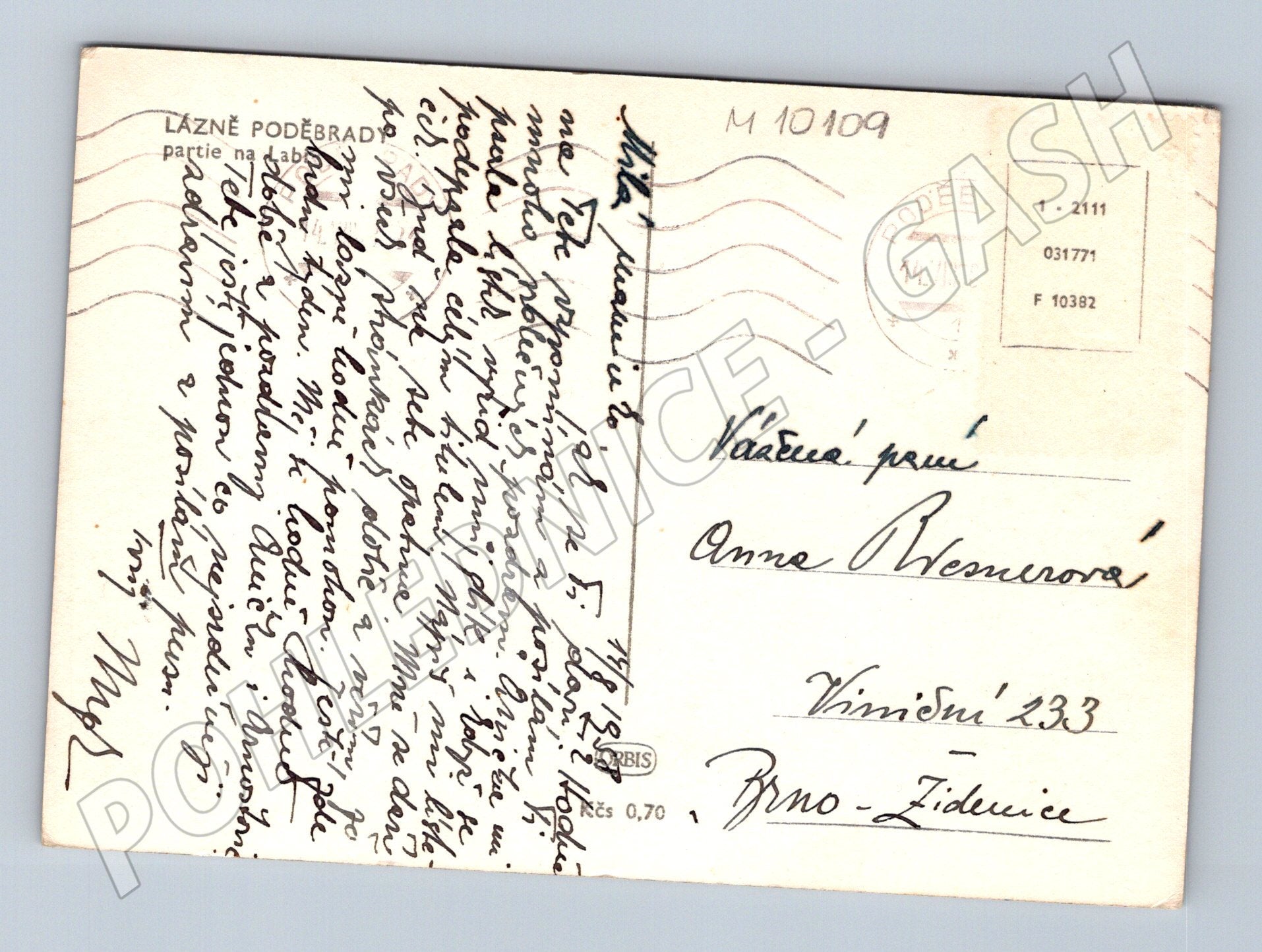Original old postcard with a motif of a steamboat on the Elbe River in the spa town of Poděbrady. On the front side there is a black and white photograph of a steamboat full of passengers, moored at the shore, with a beautiful scenery of trees and historical buildings in the background. The back side contains a handwritten message, date of posting and a stamp. The postcard was sent from Poděbrady to Brno. A very nice collector's item, suitable for lovers of the history of water transport or regional monuments. See the photo for condition.