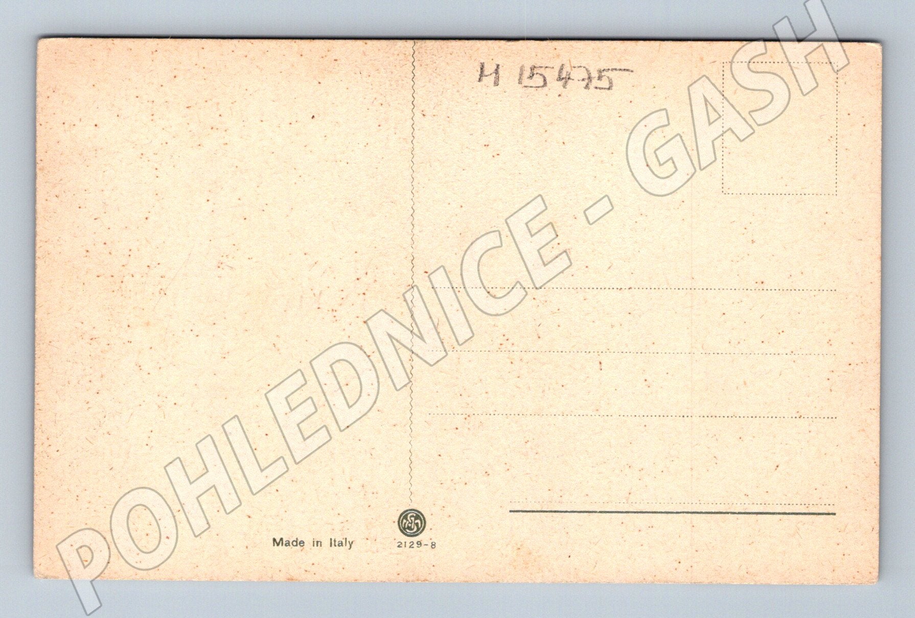Originální stará pohlednice s motivem benátského kanálu - Venezia - Rio delle Torreselle . Pohlednice zobrazuje malebnou scenérii italských Benátek s charakteristickým kanálem, gondolou na vodě a skupinami lidí v dobovém oblečení. Na pozadí je krásná historická architektura benáckých domů a mostu. Kreslený barevný motiv vyniká svou atmosférou a detailem. Zadní strana pohlednice je nepopsaná, pouze s číslem 15475 a nápisem Made in Italy . Pohlednice je v dobrém stavu, stáří a původ mohou být atraktivní pro sběratele pohlednic s italskou tematikou a milovníky historie Benátek.