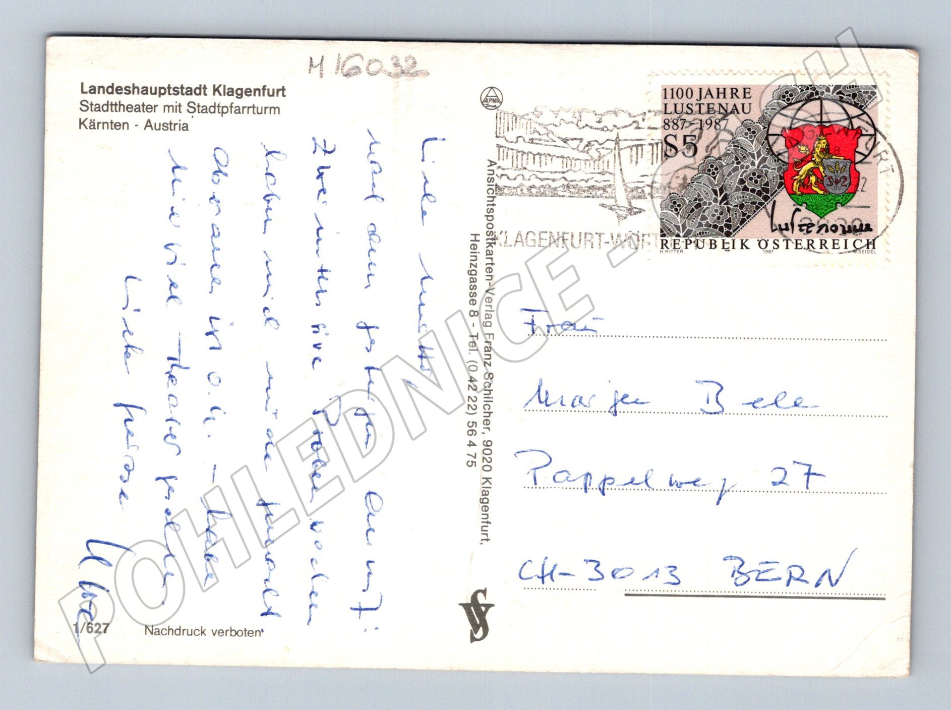 Nabízím originální pohlednici z Rakouska s motivem městského divadla v Klagenfurtu (Stadttheater Klagenfurt), v pozadí věž farního kostela. Pohlednice byla odeslaná poštou v roce 1987 do Švýcarska, opatřená rakouskou poštovní známkou a krátkým ručně psaným pozdravem. Výborný stav, svěží barvy, bez zásadního poškození. Hezká ukázka architektury s autentickou atmosférou 80. let. Vhodné pro sběratele či jako dekorace.