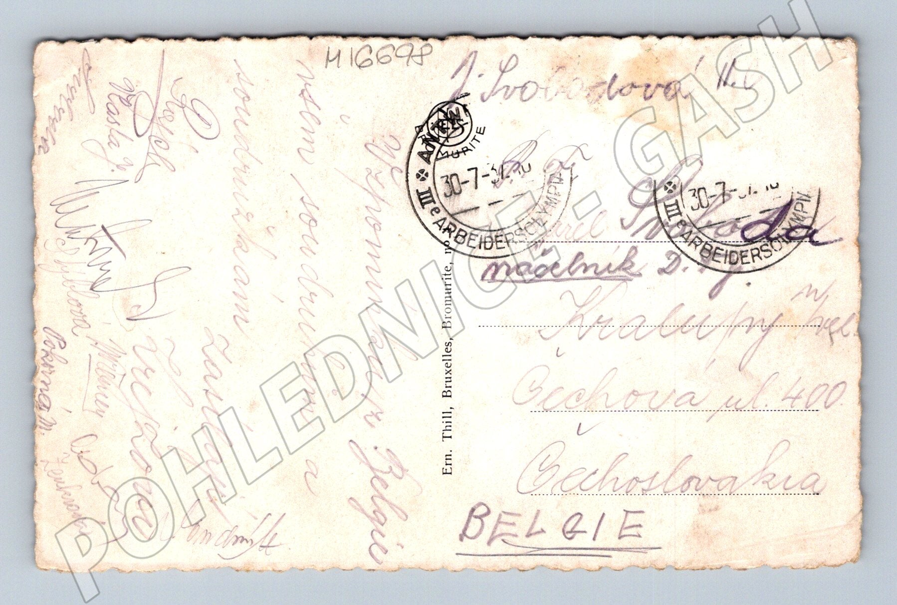Nabízím originální starou pohlednici zobrazující hlavní náměstí Grand Place s kašnou Brabo (Fontaine Brabo) v belgických Antverpách. Pohlednice je černobílá, s krásně zachycenou architekturou tamních domů a slavnou sochou a fontánou v popředí. Lícová strana je decentně patinovaná, nesoucí dobový charakter a známky opotřebení na okrajích (viz foto). Na zadní straně je ručně psaný vzkaz, poštovní známka a razítko s datem odeslání z Belgie do tehdejší Československé republiky. Pohlednice je historicky hodnotná, vhodná do sbírky nebo jako dárek pro milovníky starých evropských měst a architektury.