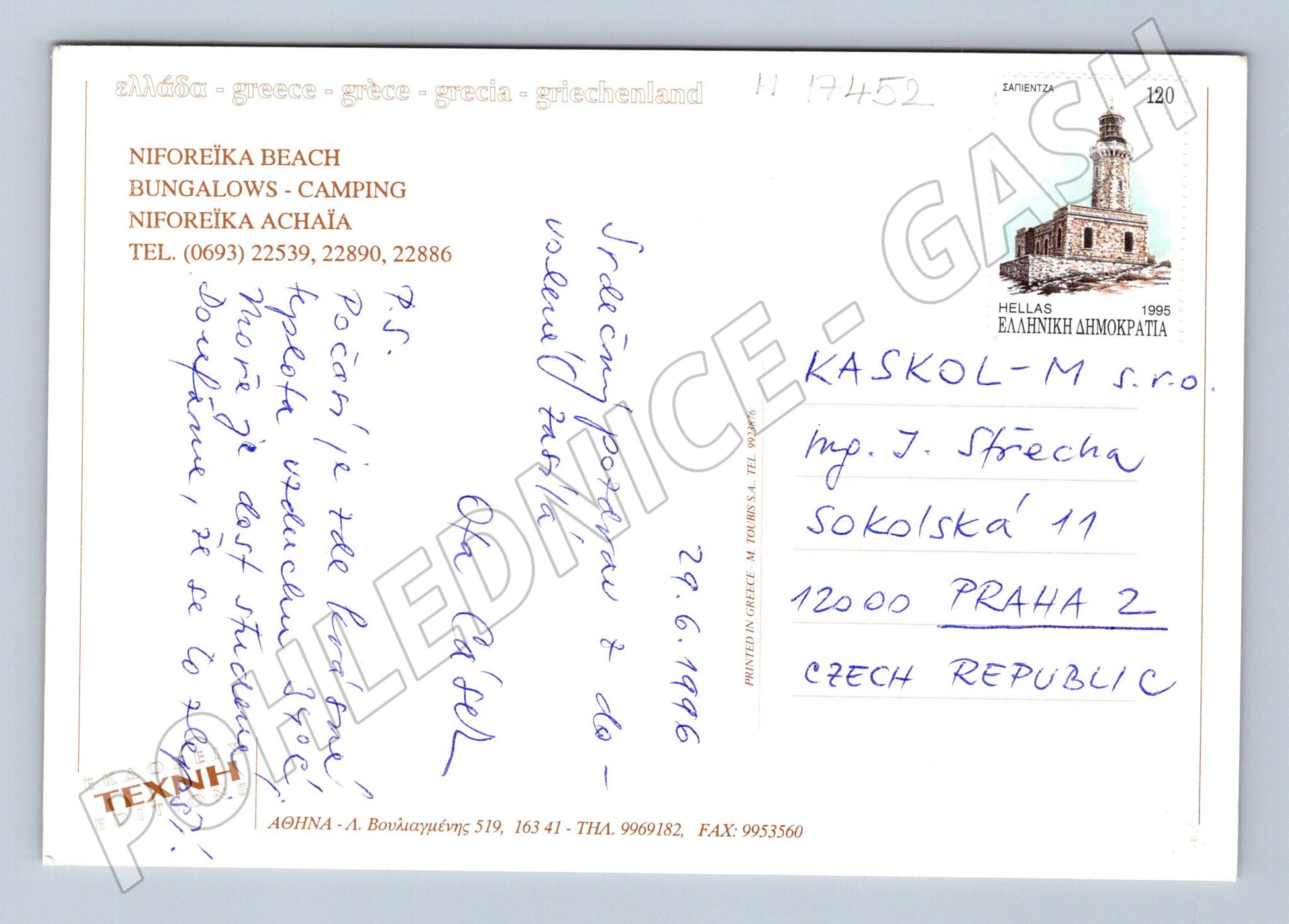 Pohlednice Řecko – Niforeika Beach 1996, prošlá, známka