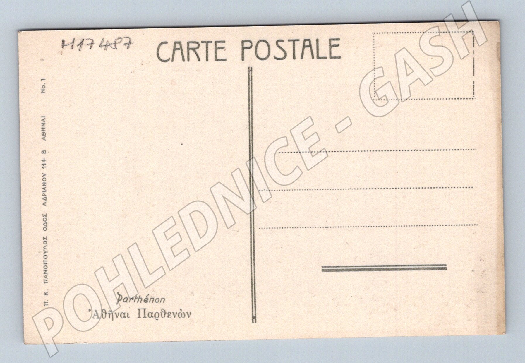 Nabízím originální starou pohlednici s motivem slavného Parthenonu v Athénách, Řecko. Pohlednice je v černobílém provedení, ve spodní části přední strany je nápis Athènes . Na zadní straně je uveden text Parthénon a řecký popis. Pohlednice je neprošlá poštou a nenese stopy poštovního razítka ani známky. Výborný historický stav, vhodné pro sběratele i milovníky antické architektury. Skvělý doplněk do sbírky zaměřené na světové památky či pohlednice s antickou tématikou.