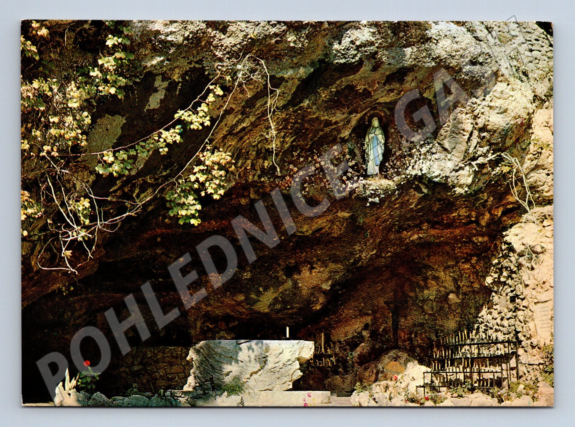 Originální pohlednice z chorvatského poutního místa Vepric, označovaného jako Hrvatsko lurdskо svetište . Pohlednice zachycuje známou jeskyni s oltářem a sochou Panny Marie, která připomíná slavnou francouzskou Lurdy. Toto místo je častým cílem poutníků z Chorvatska i zahraničí. Na zadní straně pohledu text Hrvatsko lurdskо svetište VEPRIC , originální nepoužitý stav, čistá, bez známky a bez psaného textu. Ideální do sbírky pohlednic ze zahraničních poutních míst, zajímavost pro milovníky náboženských památek i filokartisty.