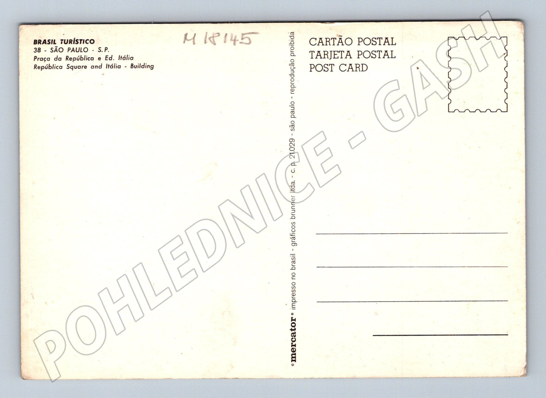 Originální pohlednice z Brazílie, konkrétně města São Paulo. Na pohlednici je zachyceno známé náměstí Praça da República a ikonická budova Edifício Itália. Typický městský park s palmami a moderními výškovými budovami vytváří jedinečnou atmosféru jednoho z největších měst Jižní Ameriky. Na zadní straně pohlednice je popis v několika jazycích. Pohlednice je neprošlá, ve velmi dobrém stavu, ideální do sbírky zaměřené na světová města nebo Brazílii.