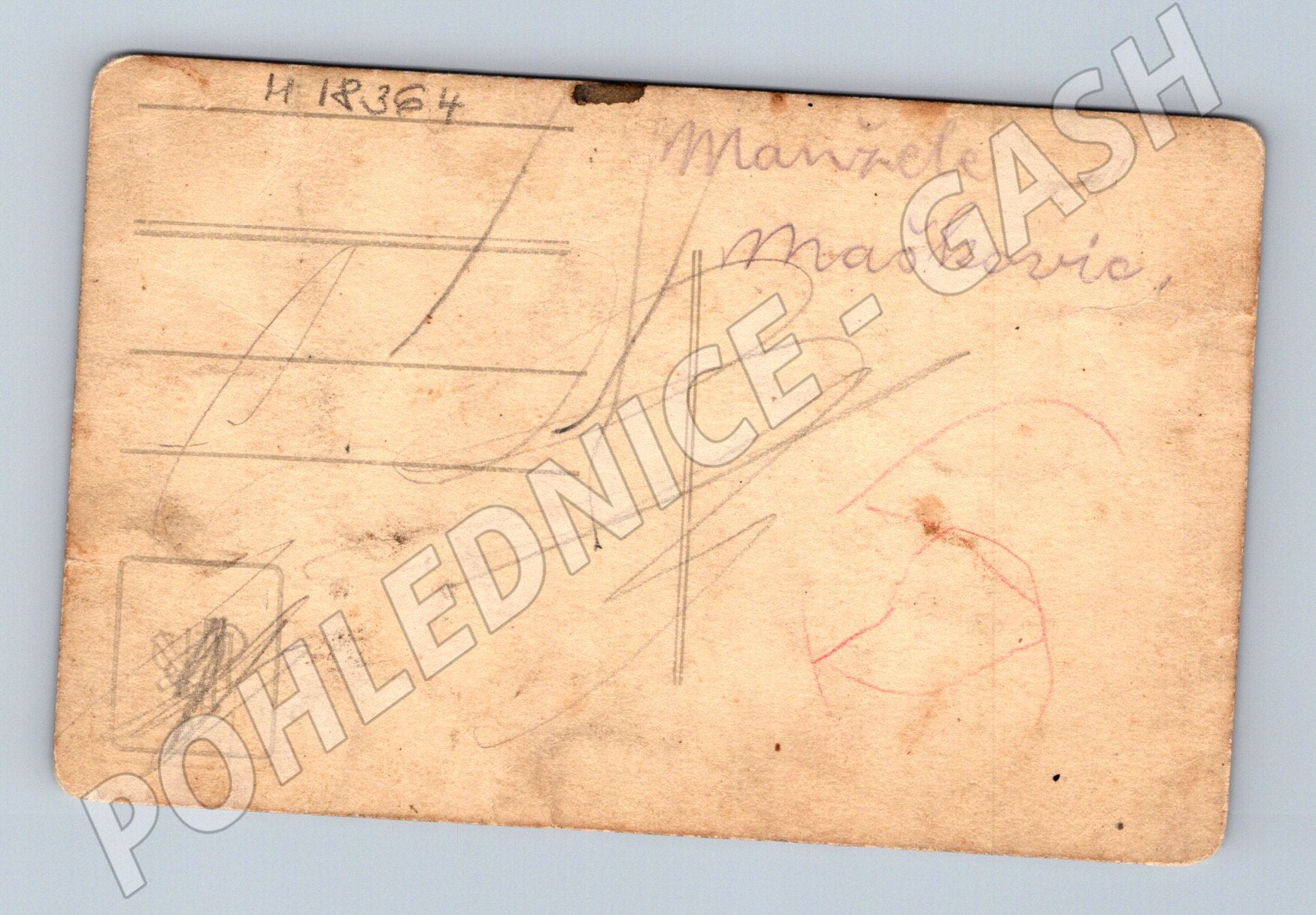 Originální stará svatební pohlednice s manželským párem z období první poloviny 20. století. Na přední straně je elegantně oblečený muž a žena s kyticí květin, fotografie je v secesním stylu s jemným rozostřeným pozadím. Zadní strana je popsána tužkou: Manželé Maškovic . Pohlednice nese stopy stáří – ohyby, drobné škrábance a lehké opotřebení hran. Rozměry klasického menšího formátu. Vhodné pro sběratele historických pohlednic, retro fotografií nebo genealogického výzkumu.