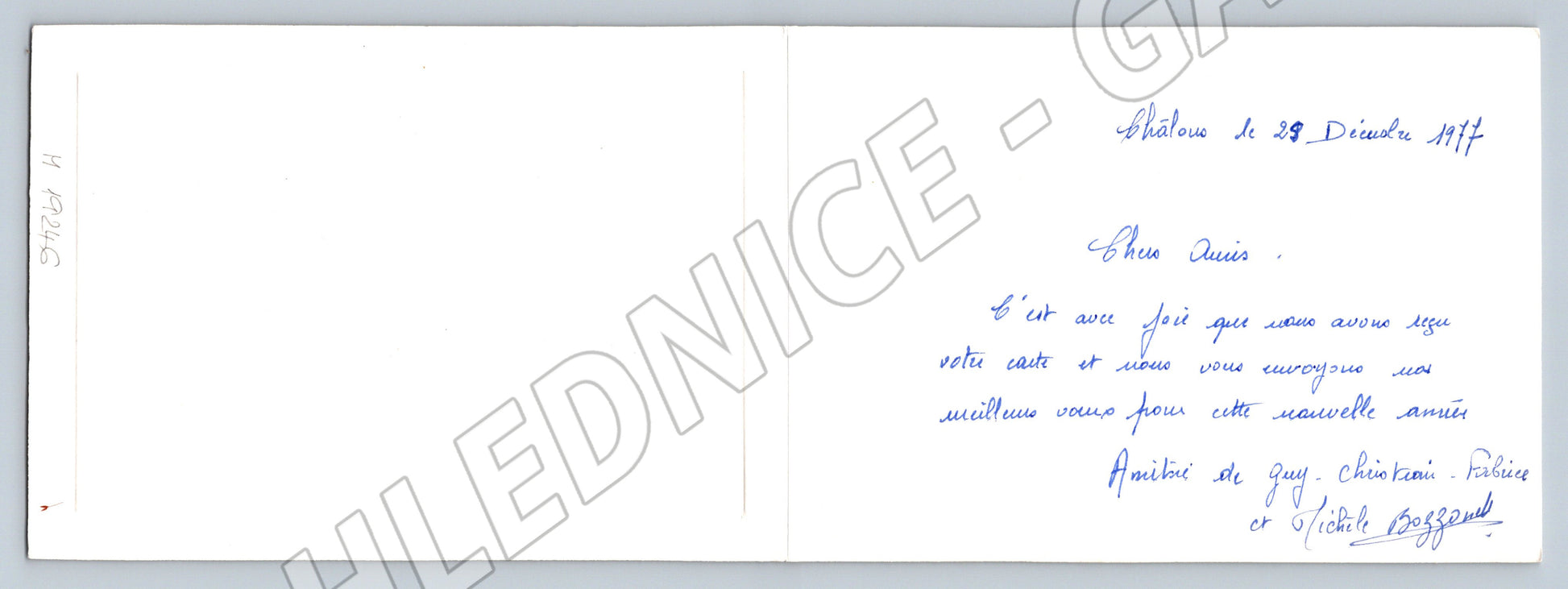 Pohlednice Chalon-sur-Saône, Francie, 1977 – kresba, věnování. otvírací