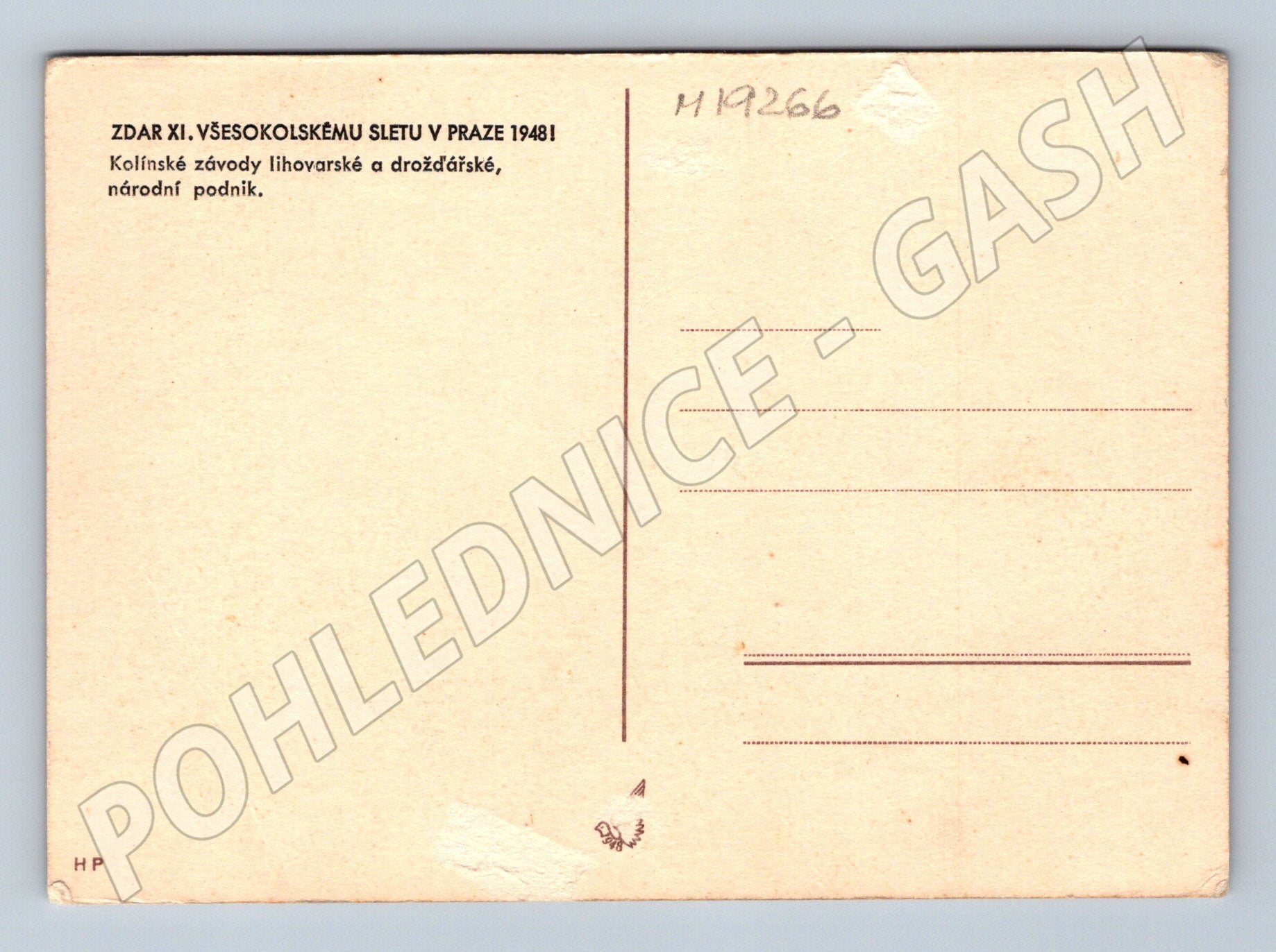 Originální dobová pohlednice vydaná k XI. všesokolskému sletu v Praze v roce 1948. Na přední straně je barevná kresba zachycující atmosféru hromadného sokolského cvičení a slavnostní přehlídky. Pohlednice nese nápis: Náš společný cíl. XI. všesokolský slet v Praze - červen-červenec 1948 . Zadní strana je čistá, určena pro adresu a text, s poznámkou Zdar XI. všesokolskému sletu v Praze 1948! Kolínské závody lihovarské a drožďářské, národní podnik. Skvělý sběratelský kousek pro zájemce o českou historii, Sokol a historické pohlednice z období před rokem 1950.