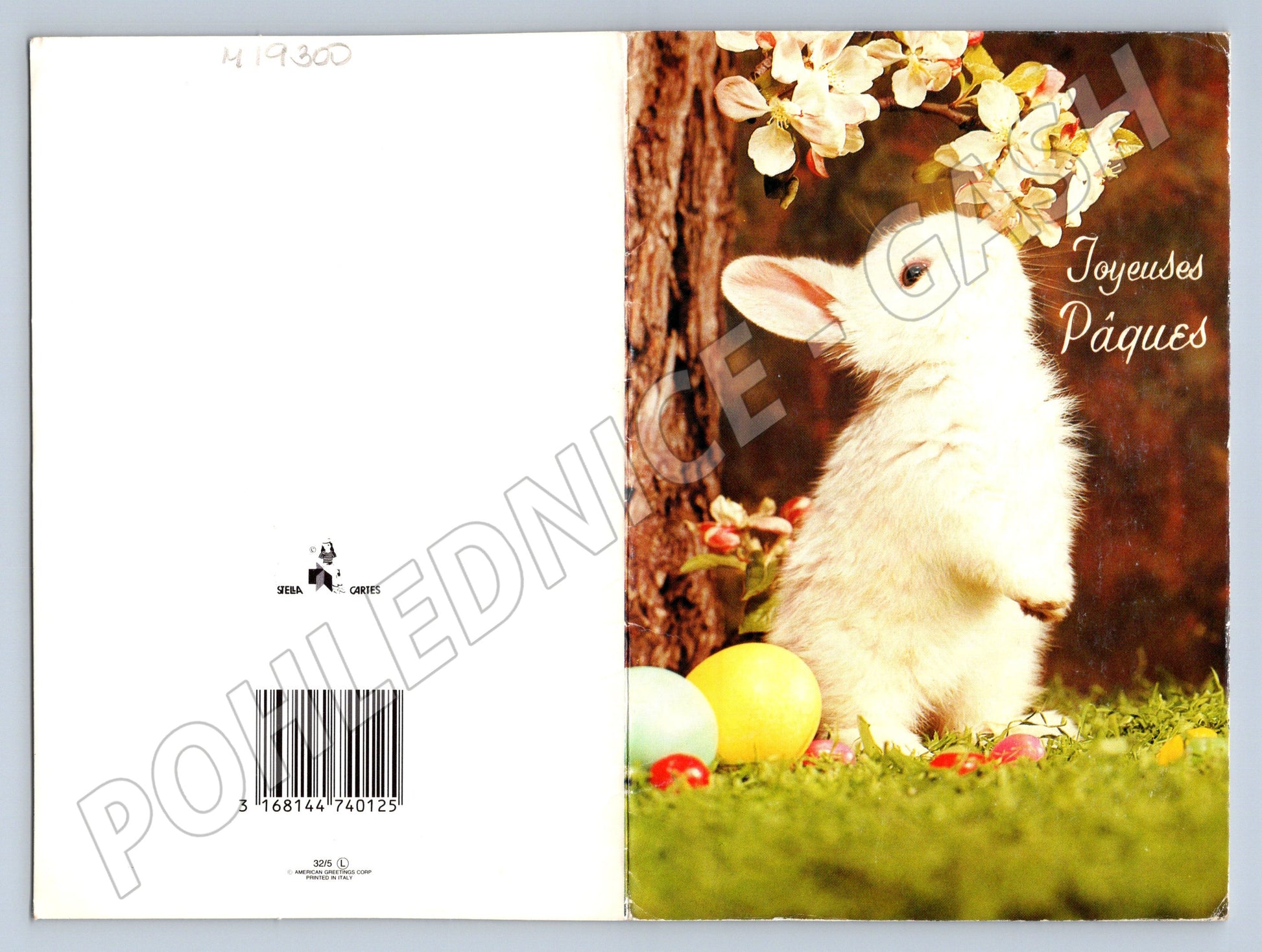 Velikonoční pohlednice s králíčkem a vajíčky, Francie 1987