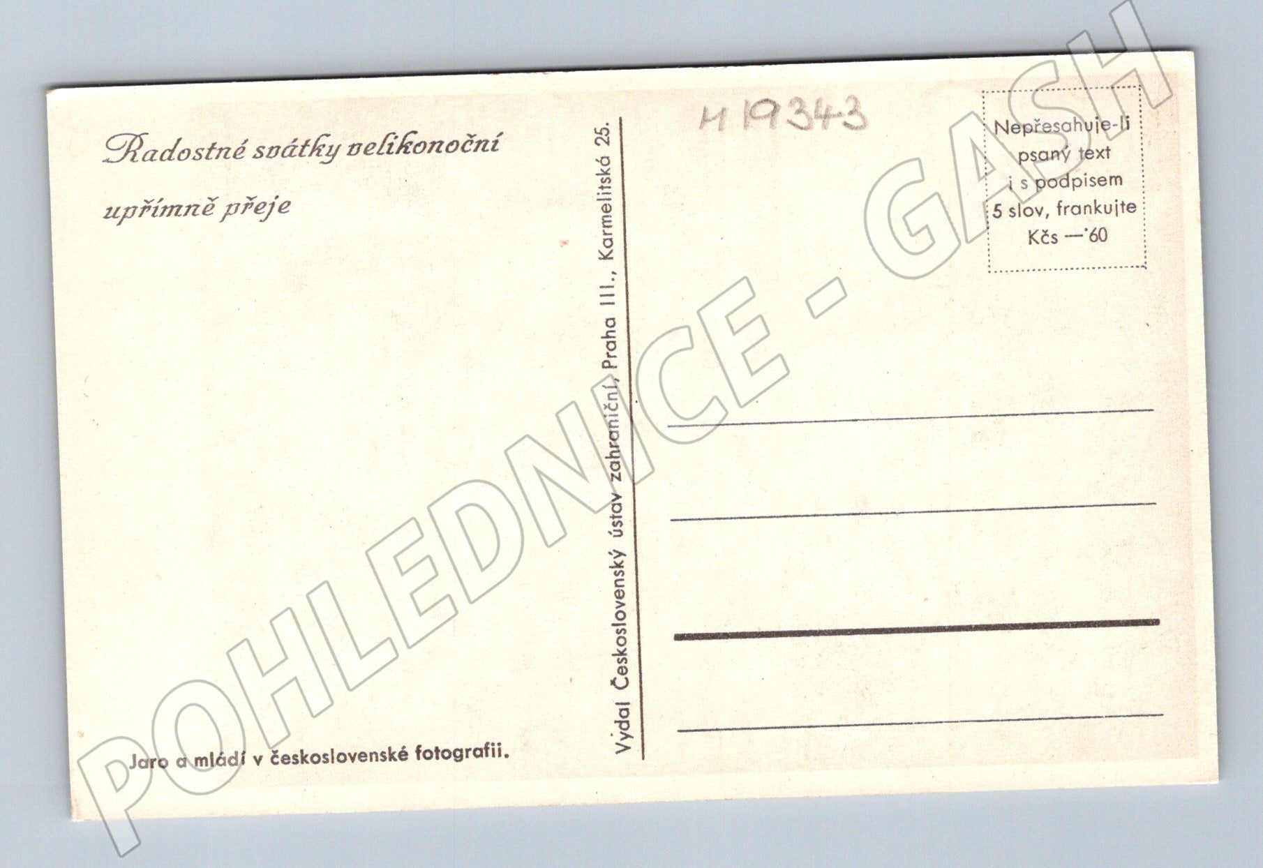 Originální velikonoční pohlednice z období Československa s motivem keramického koníka a vázy s květinami. Pohlednice obsahuje přání Radostné svátky velikonoční upřímně přeje a byla vydána Československým ústavem zahradním, Praha III. na kvalitním papíru s označením Jaro a mládí v československé fotografii . Zadní strana je čistá, připravena pro odeslání. Pohlednice je ve velmi dobrém stavu a vhodná pro sběratele i milovníky retro pohlednic.