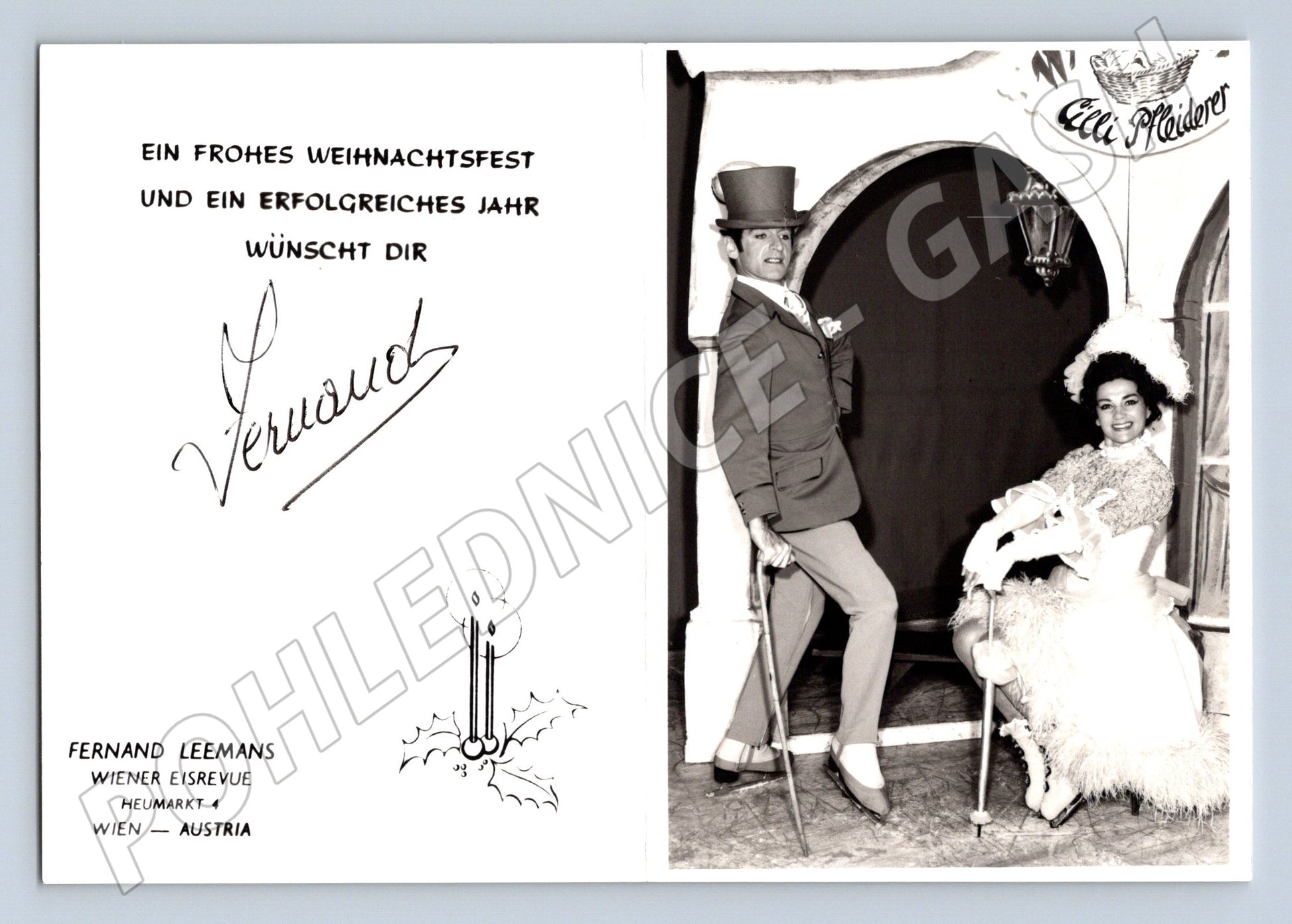Originální vintage pohlednice z Vídně, Rakousko. Černobílá fotografie zachycuje slavnostně oblečený pár ve stylu vídeňské revue. Pohlednice je novoroční a vánoční s německým přáním: Ein frohes Weihnachtsfest und ein erfolgreiches Jahr wünscht dir... . Na pohlednici je uvedeno jméno Fernand Leemans, Wiener Revue. Pohlednice je nepoužitá, čistá, velmi dobrý stav, bez známek poškození. Ideální sběratelský kousek pro milovníky rakouských pohlednic, historických scén a kabaretů ve vídeňském stylu. Rozměr standardní pohlednice, přibližně 14 x 9 cm.