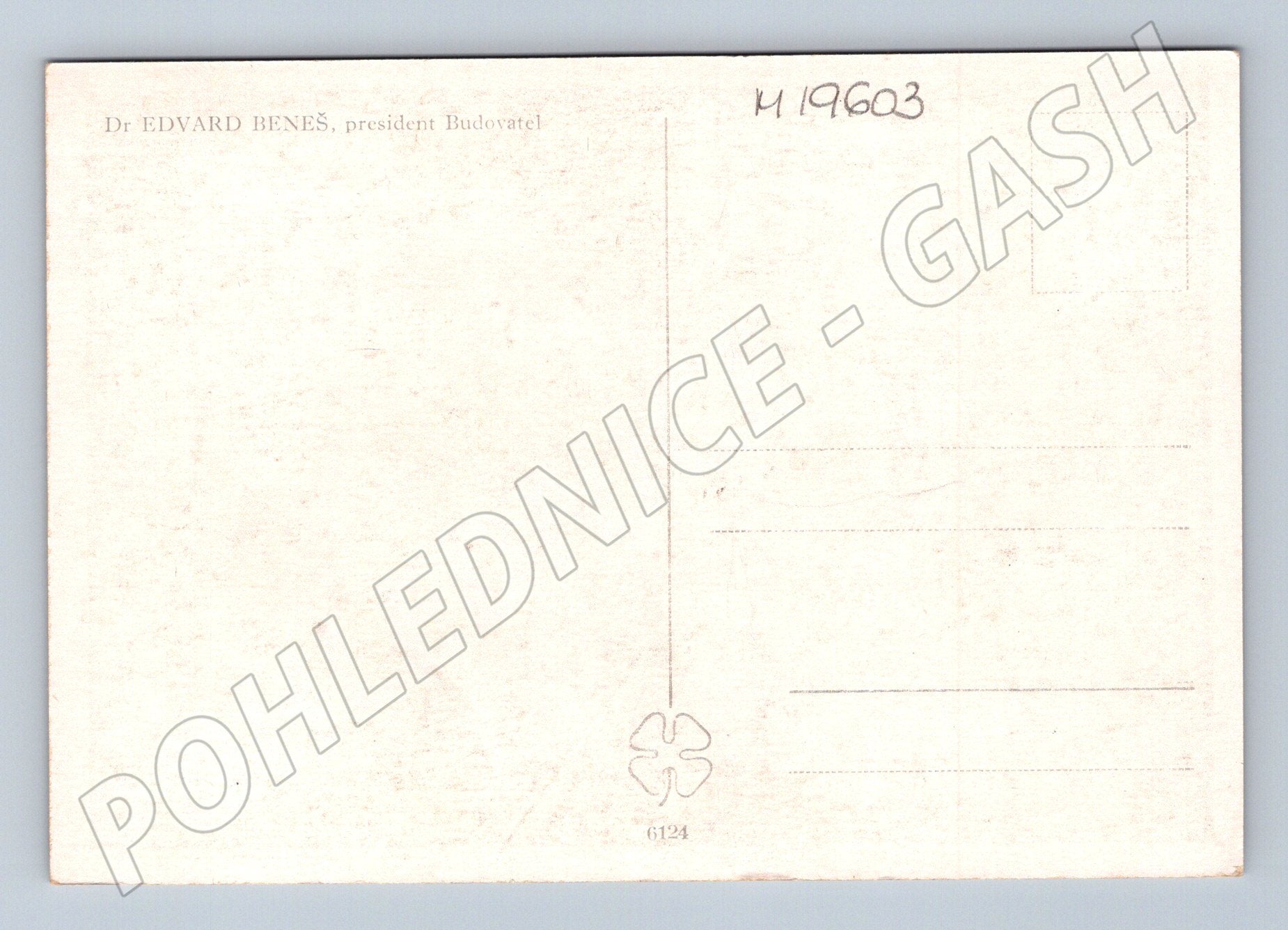 Originální stará pohlednice s vyobrazením prezidenta Dr. Edvarda Beneše, který přijímá květiny od dvou dívek v kroji. Pohlednice je v černobílém provedení a na zadní straně je označení Dr. EDVARD BENEŠ, president Budovatel . Pohlednice není popsána ani prošlá poštou. Stav velmi dobrý, vhodné pro sběratele historických pohlednic a zájemce o dějiny Československa.