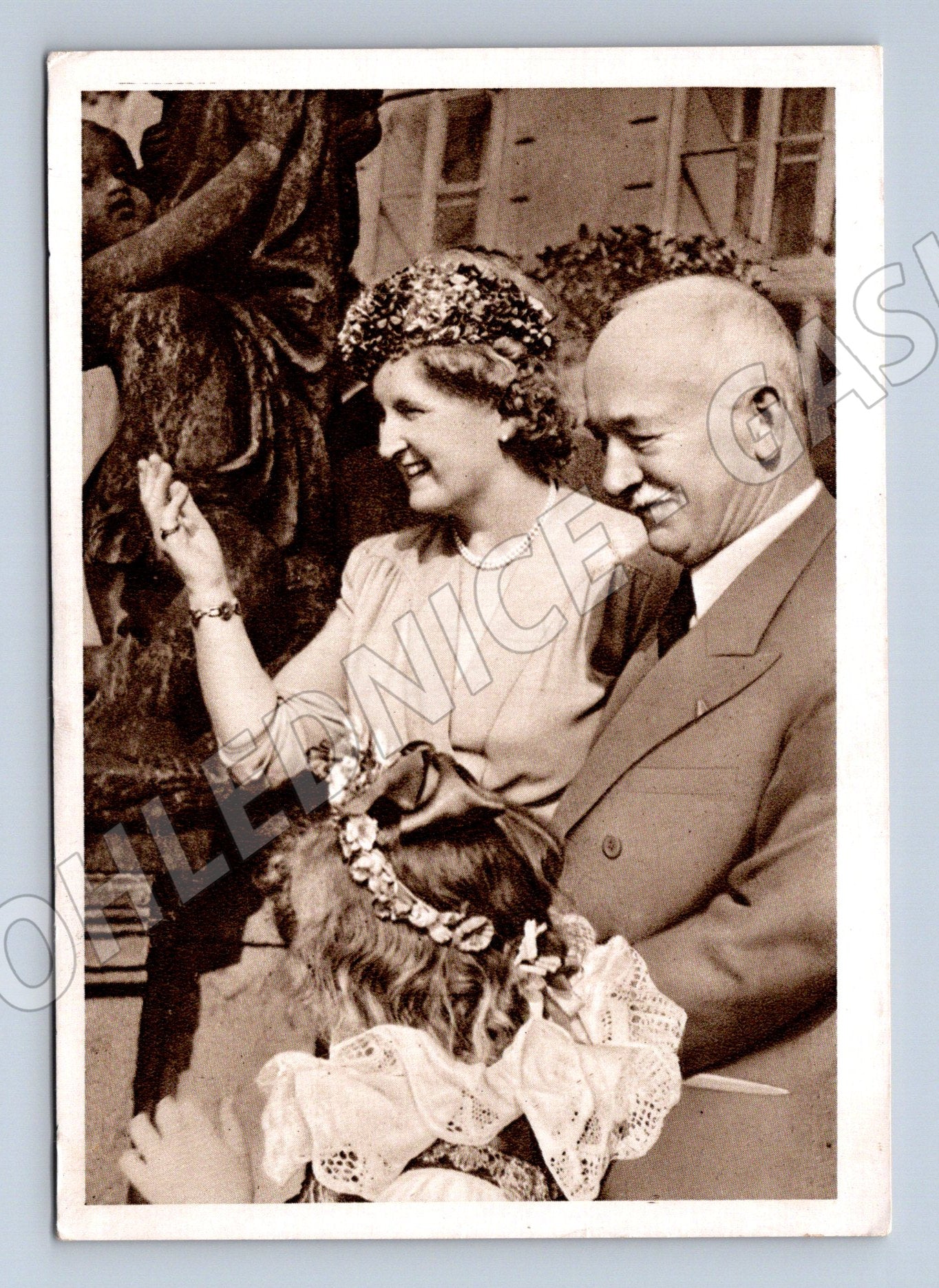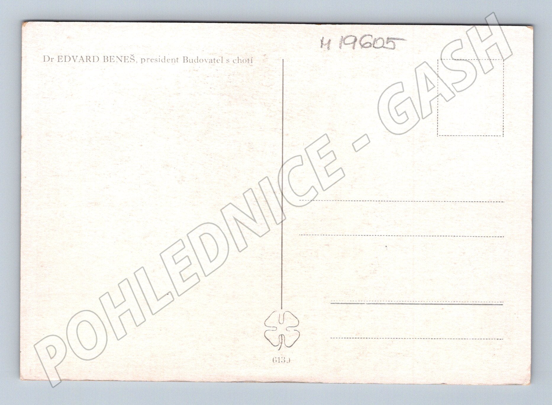 Originální černobílá pohlednice s portrétem Dr. Edvarda Beneše, prezidenta Československé republiky, se svou chotí. Snímek zachycuje prezidenta v osobním a laskavém momentu, což přidává pohlednici na hodnotě a zajímavosti. Na zadní straně je označení Dr EDVARD BENEŠ, president Budovatel s chotí . Pohlednice je ve velmi dobrém původním stavu, neprošlá poštou, bez známky a adresy. Ideální pro sběratele historických či politických pohlednic nebo zájemce o československé dějiny.