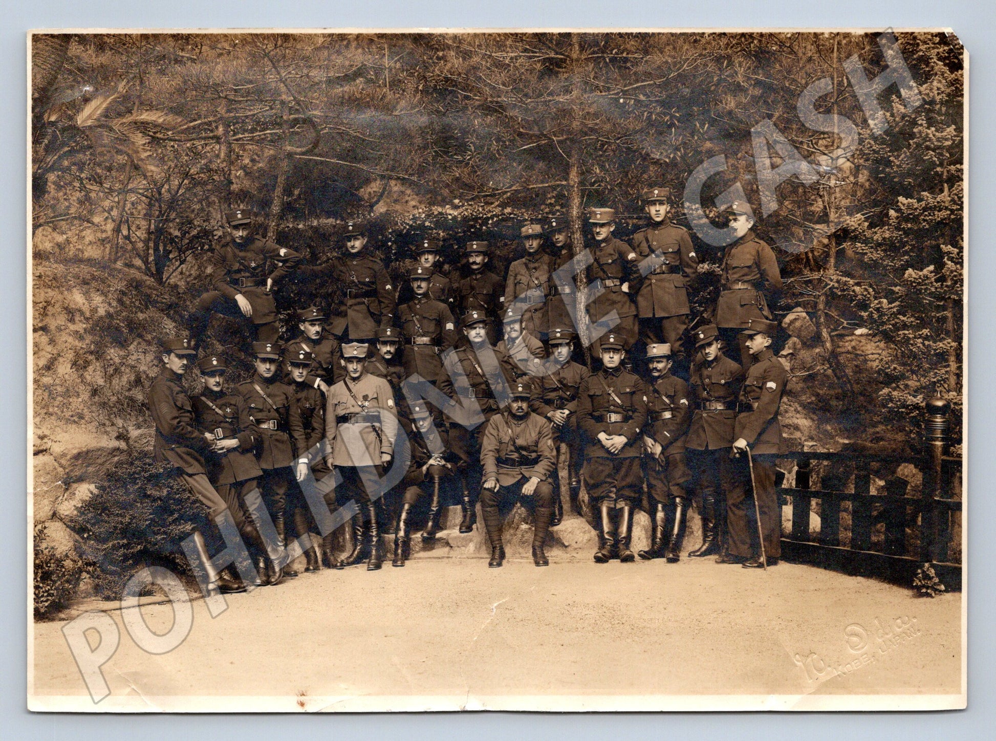 Nabízím originální starou pohlednici s černobílou fotografií skupiny uniformovaných mužů – pravděpodobně vojenských činitelů nebo důstojníků první poloviny 20. století (rok 1934 je tužkou poznamenán na zadní straně). Pohlednice je ve velmi dobrém stavu, mírně zašlé rohy, bez natržení. Fotografie zachycuje skupinu asi dvaceti mužů, stojících venku u zábradlí a v přírodě, většina v uniformě se znaky hodnosti. Na zadní straně žádný text, pouze rok. Vhodné pro sběratele pohlednic s vojenskými, politickými či historickými motivy. KOBE JAPAN