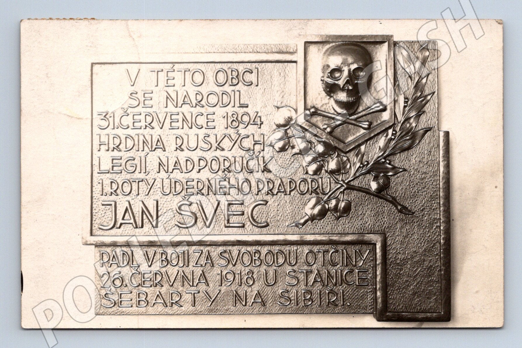 Pohlednice pamětní deska Jan Švec, ruské legie, 1918, malý formát