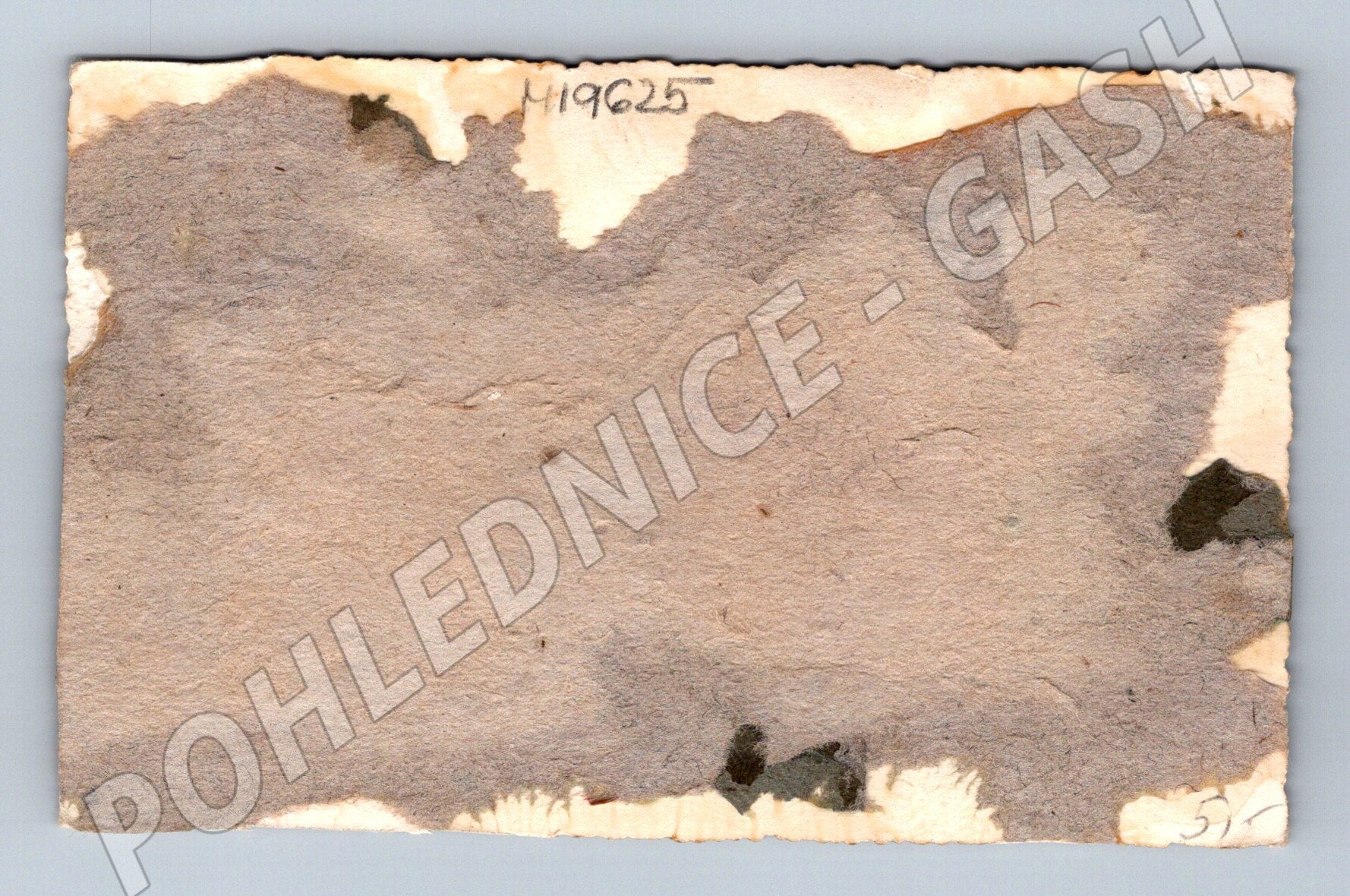 Originální černobílá svatební pohlednice z období první poloviny 20. století. Na fotografii je skupinový portrét svatebčanů v elegantních dobových oděvech včetně vojenských uniforem. Typické pro tuto éru jsou dlouhé svatební šaty, květinové dekorace a slavnostní atmosféra. Pohlednice je ve sběratelském stavu – viditelné stopy stáří, opotřebení a zašlý rub. Autenticitu potvrzuje originální textura papíru a na rohu vyražená jména fotografa/studia. Unikátní dobový dokument – výborný doplněk do sbírky nebo retro dekorace.