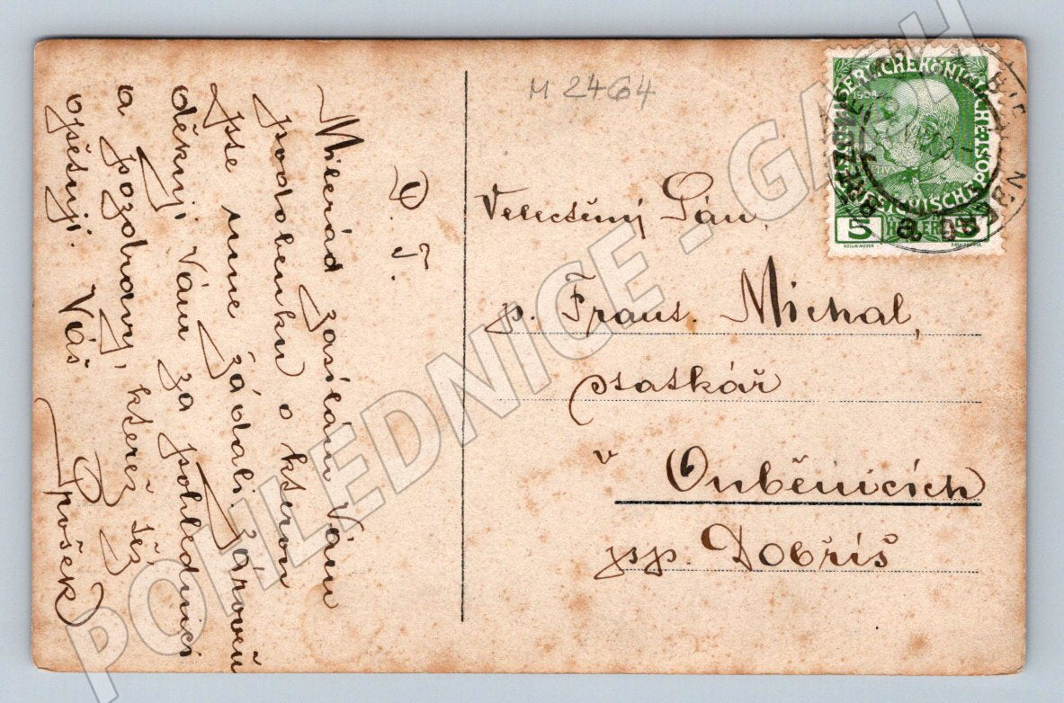 I am offering a rare old postcard with a portrait of a little girl, cut into an oval frame. The postcard dates from before 1950, which is also evidenced by the used postage stamp. On the back there is a scratched handwritten text and the addressee - Mr. Franz Michal, a dog breeder in Onbéničy. The postcard is stamped and is in good condition with visible slight wear and traces of age. An ideal accessory for collectors of old postcards, especially those with authentic handwriting and postage stamps. Suitable for lovers of history, classic photographic postcards and Czech motifs from the early 20th century.