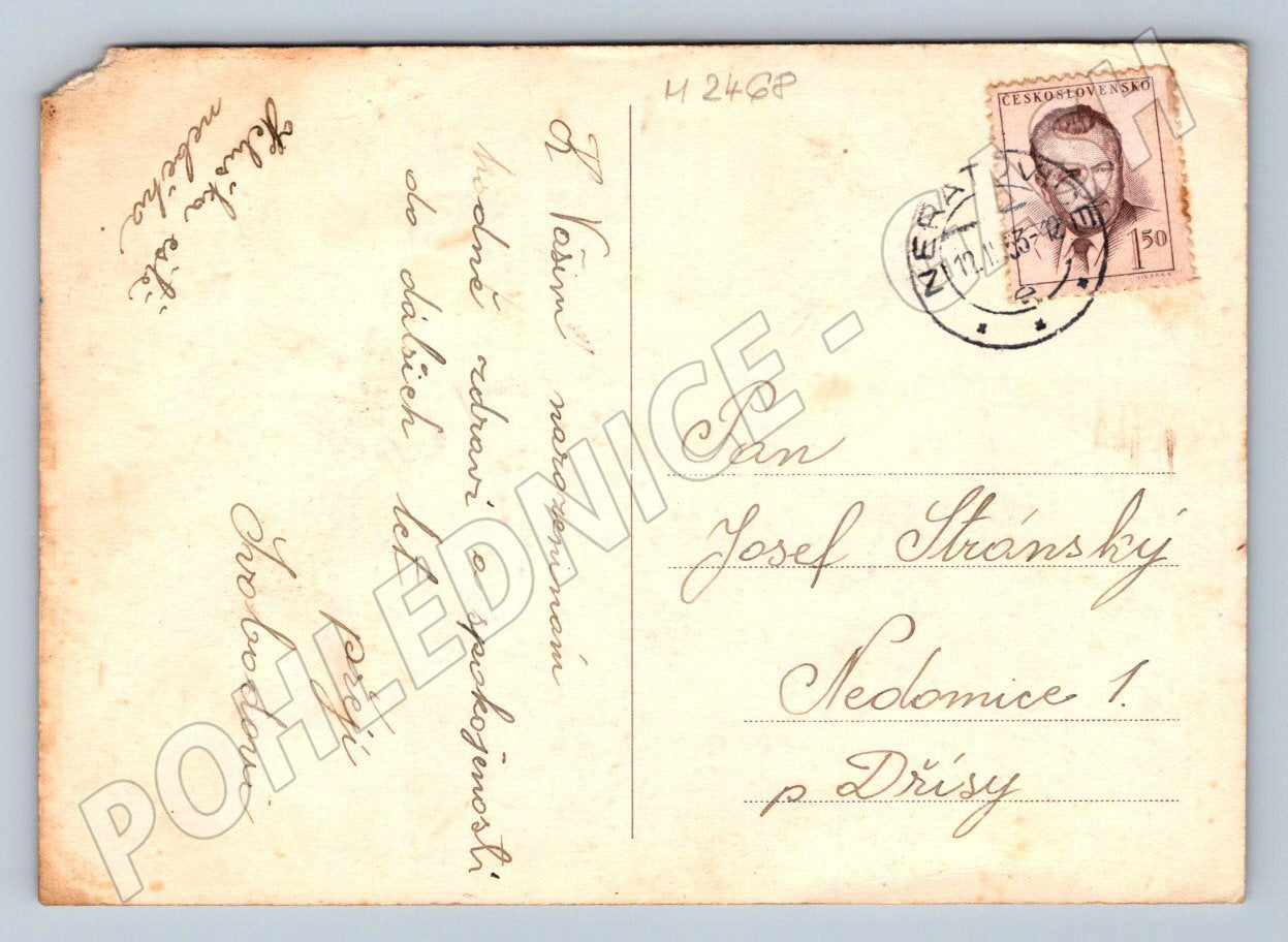 I am offering an old postcard with an illustration of two children sitting by a tree stump in nature, characterized by delicate hand drawing and pastel colors. The postcard is addressed to Mr. Josef Stránský and has a postmark from 1937 from Neratov. This piece is a beautiful example of a period children's illustration and has historical value as a collector's item. The postcard has slight signs of age, especially the corners, see photo. Suitable for collectors of old postcards and lovers of Czechoslovak ethnography.