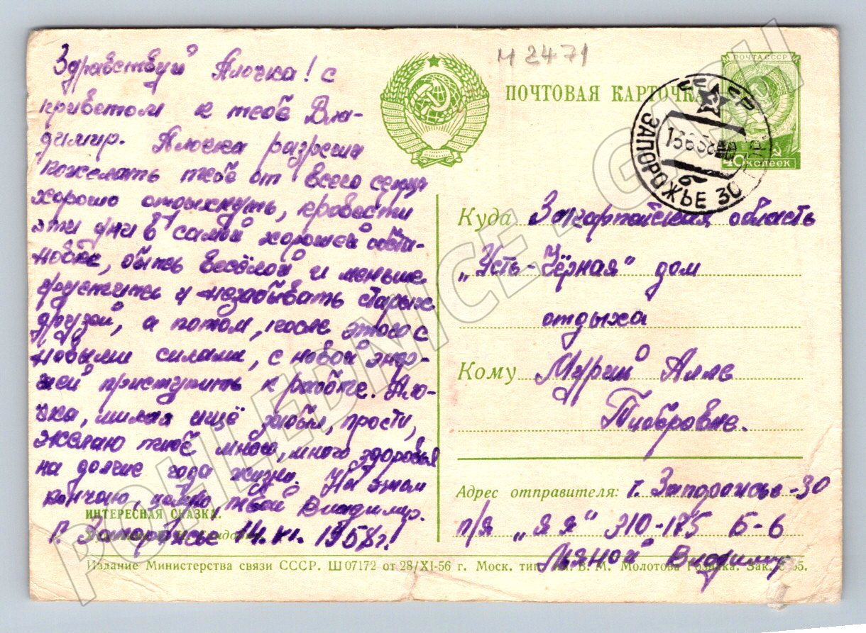 I am offering an old Soviet postcard from 1958 depicting a loving family scene where a grandfather reads a fairy tale to the children. The postcard is handwritten in Russian and has postmarks, which adds to its historical value. Printed by the USSR Ministry of Communications. The postcard is in good condition with visible slight wear to the edges, but with nicely preserved color motif. Suitable for collectors and lovers of historical and cultural artifacts from the USSR era. Standard size, suitable for sending and displaying.