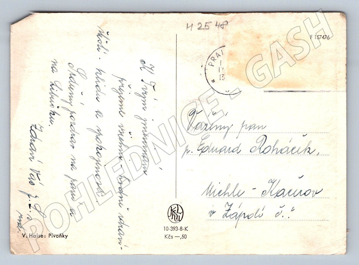 I am offering an older postcard with the motif of the painting Peonies by V. Haise. The postcard depicts a floral composition in a ceramic vase on a dark background, an excellent reproduction of the work of art. The postcard is provided with a handwritten dedication and a postmark, which adds an authentic historical touch. The condition corresponds to its age, the edges and corners have noticeable wear, but the painting itself is not damaged. Ideal for collectors of art postcards and lovers of floral motifs with a touch of history.