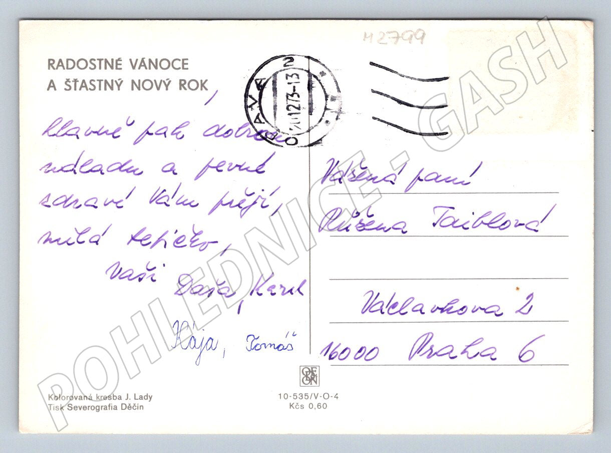 I am offering an interesting Christmas postcard with a colored winter motif by the famous Czech illustrator Josef Lada from 1957. The postcard depicts a small village house and figures of children on a sled in a snowy landscape. On the back is written a personal Christmas and New Year's greeting. The postcard has a patina of age, is well-preserved and suitable for collectors or as an original Christmas greeting. Print Severografia Děčín. Price listed in CZK.