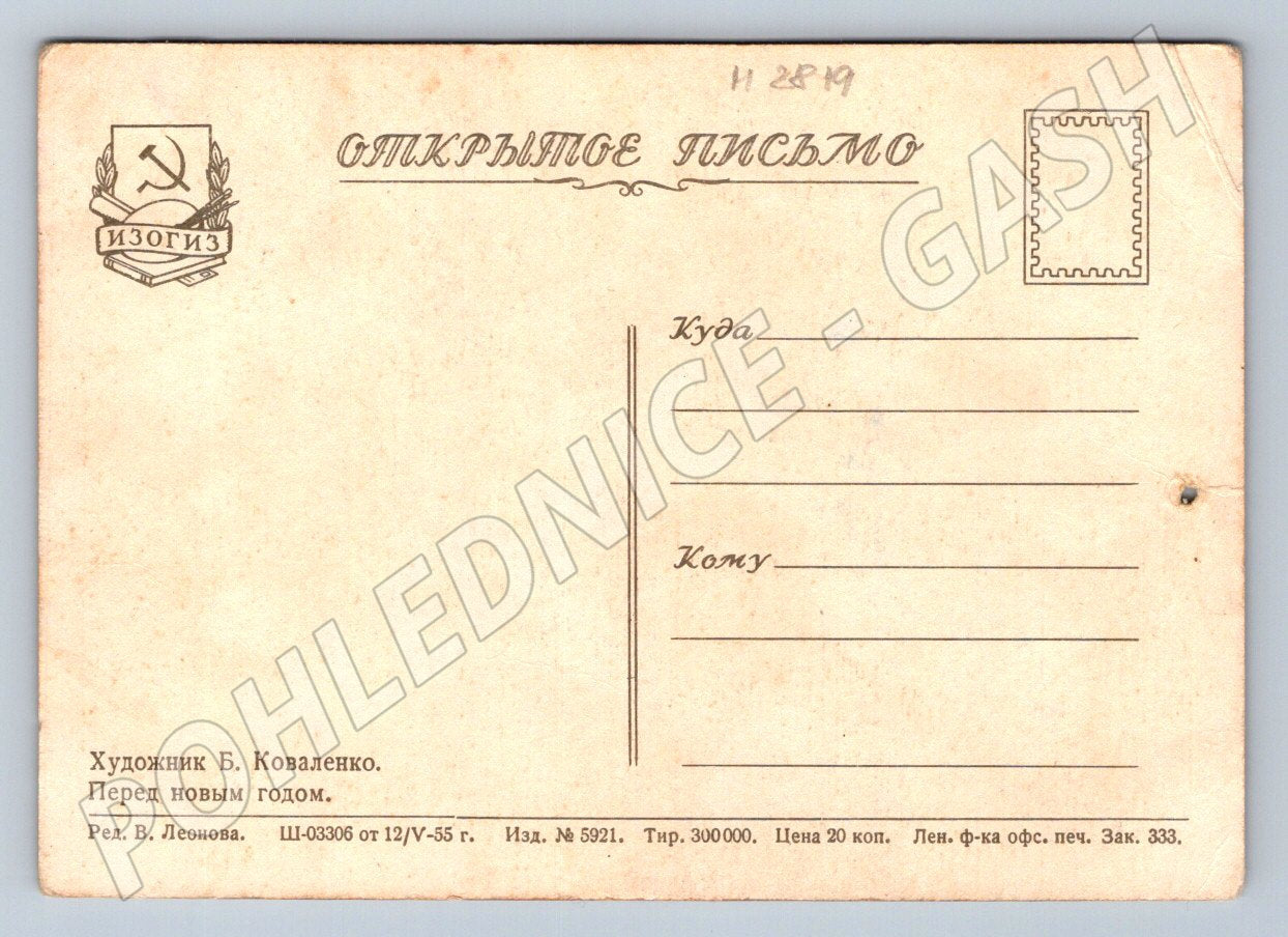 I am offering an original Soviet postcard with a Christmas theme from 1955. The front side illustrates a cheerful winter motif - a woman carrying a Christmas tree, next to her a child holding gifts. The postcard is printed in the Soviet Union, bears typical Soviet symbols and text in Russian. The entry at the bottom of the postcard confirms the date of issue May 12, 1955 and the circulation of 300,000 pieces. The postcard is in very good condition with minor signs of age, suitable for collectors of historical postcards from the Soviet era and lovers of Christmas collections.