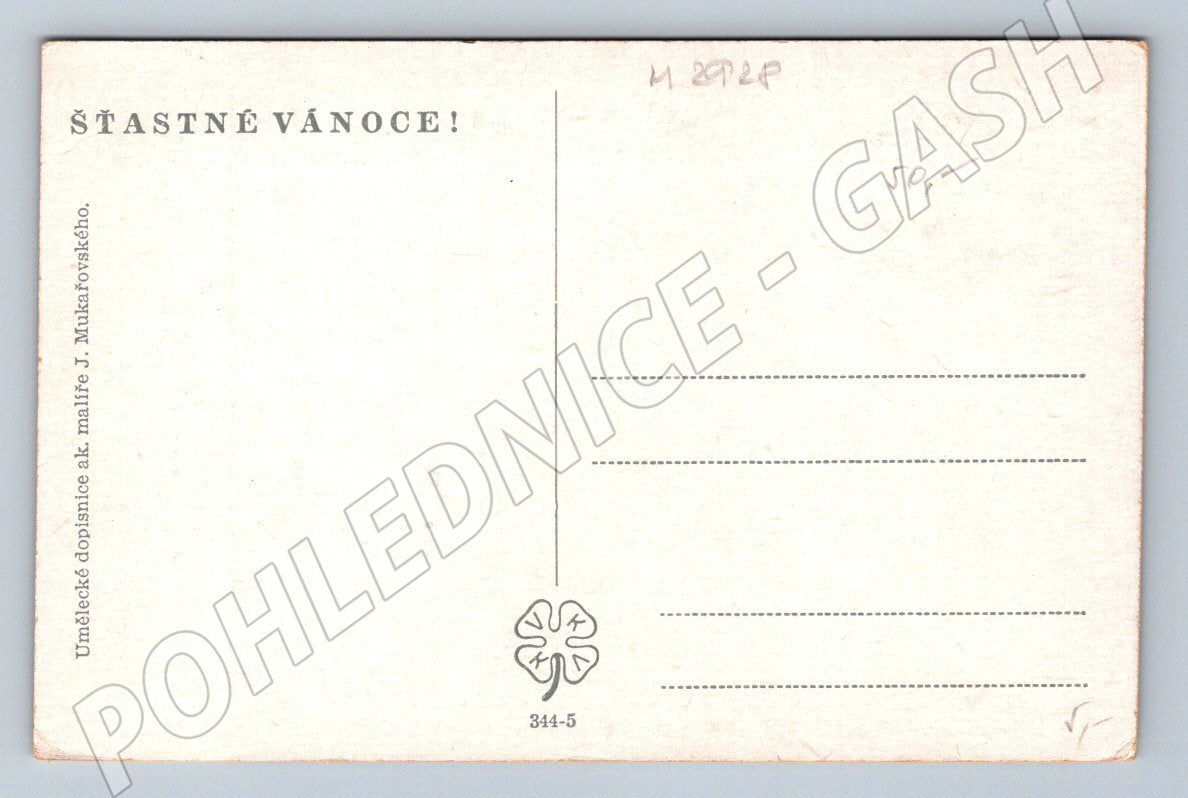 I am offering an old Christmas postcard titled Happy Christmas. The postcard depicts a winter night scene with people in traditional folk costumes walking along a snowy path to an illuminated chapel. The scene is illuminated by moonlight and evokes the peace and Christmas atmosphere of ancient times. The postcard is in a vintage style, the author is the painter J. Mukařovský, which is stated on the back. The postcard is in good condition with minor signs of age, without damage. Ideal for adding to a collection of ethnographic and Christmas postcards or as an interesting decorative piece.
