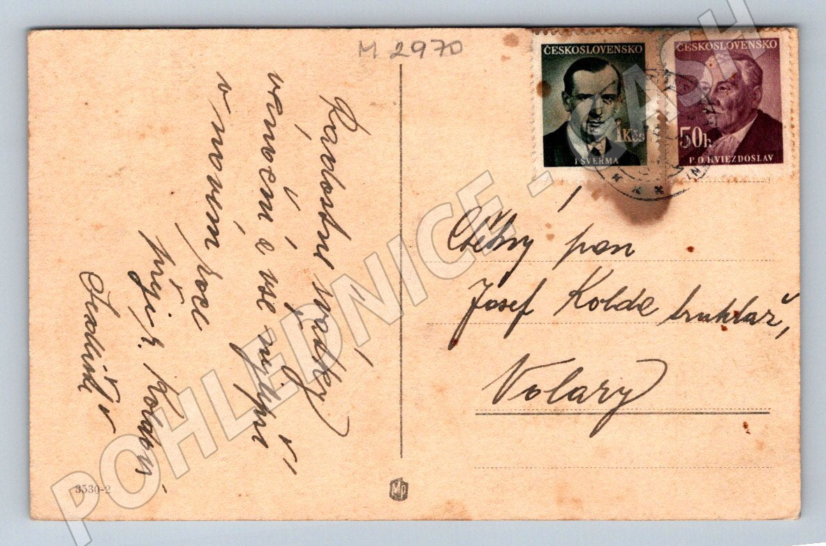 I am offering for sale an older postcard depicting snowy trees in the Maple Year. The postcard is provided with a handwritten dedication message and two postage stamps of Czechoslovakia. The condition of the postcard shows signs of age, but remains well-preserved and suitable for collectors of historical postcards. An ideal addition to a collection of postcards from the Czech Republic with motifs of nature and winter landscapes. I recommend!