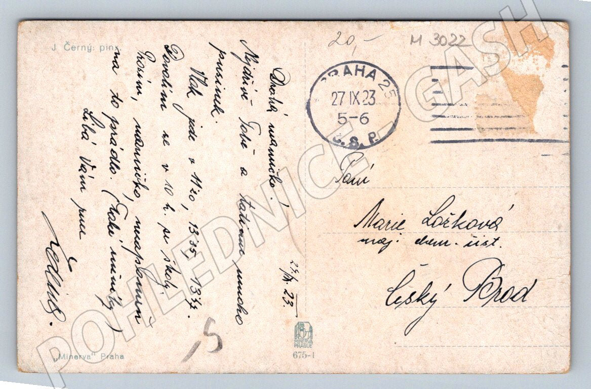 I am offering an old postcard depicting two female portraits in traditional folk costumes, which are detailed and colorfully processed. The postcard dates from the first half of the 20th century, specifically it is dated 1923, which is evidenced by the postmark on the back. The postcard bears the address and a short handwritten message in Czech. The postcard format is smaller, suitable for collections, well-preserved condition with minor signs of wear on the edges. This interesting artifact of folk culture and art is suitable for collectors of ethnographic and historical postcards.