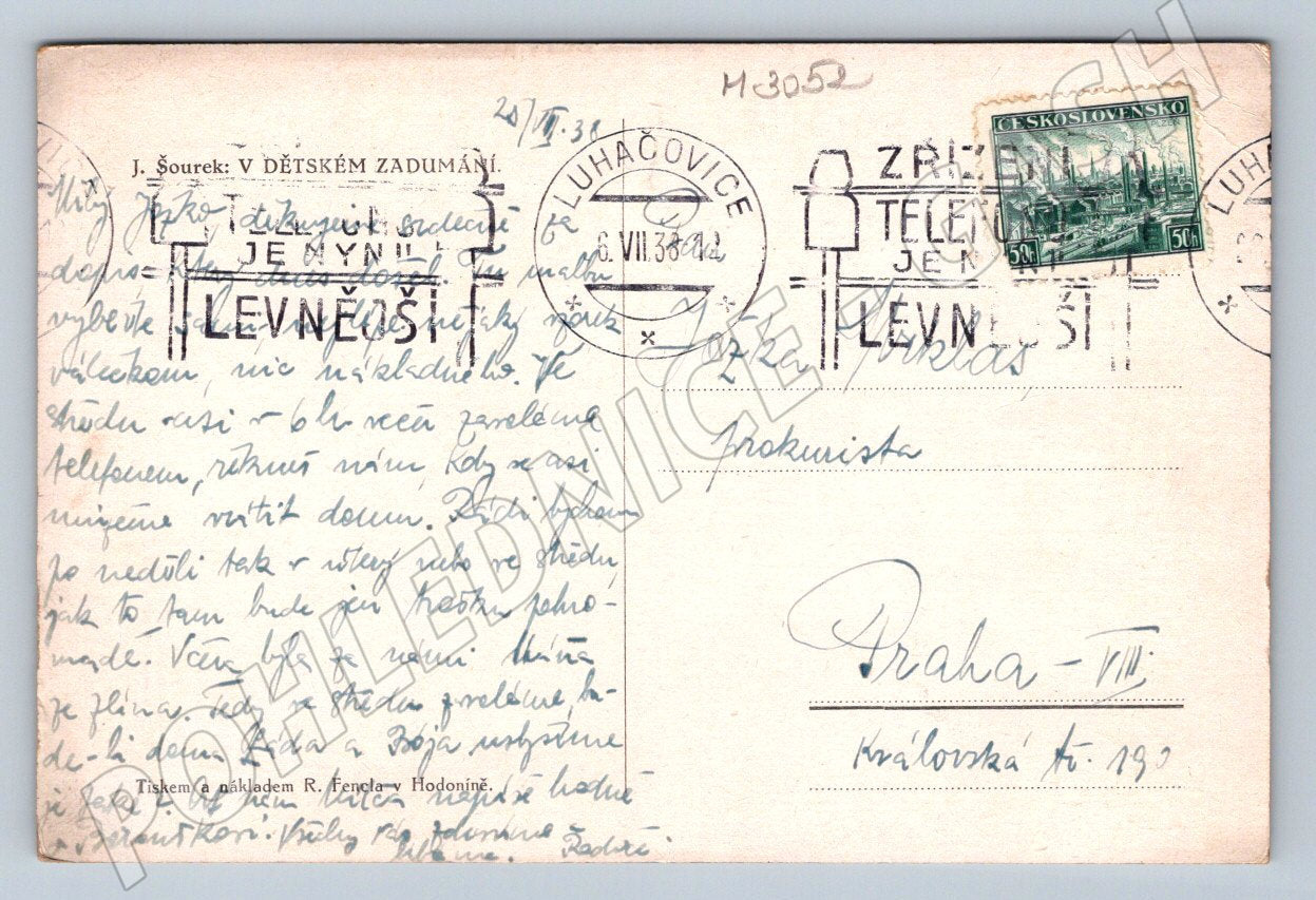 Postcard J. Šourek - In a child's reverie, 1936, ethnography