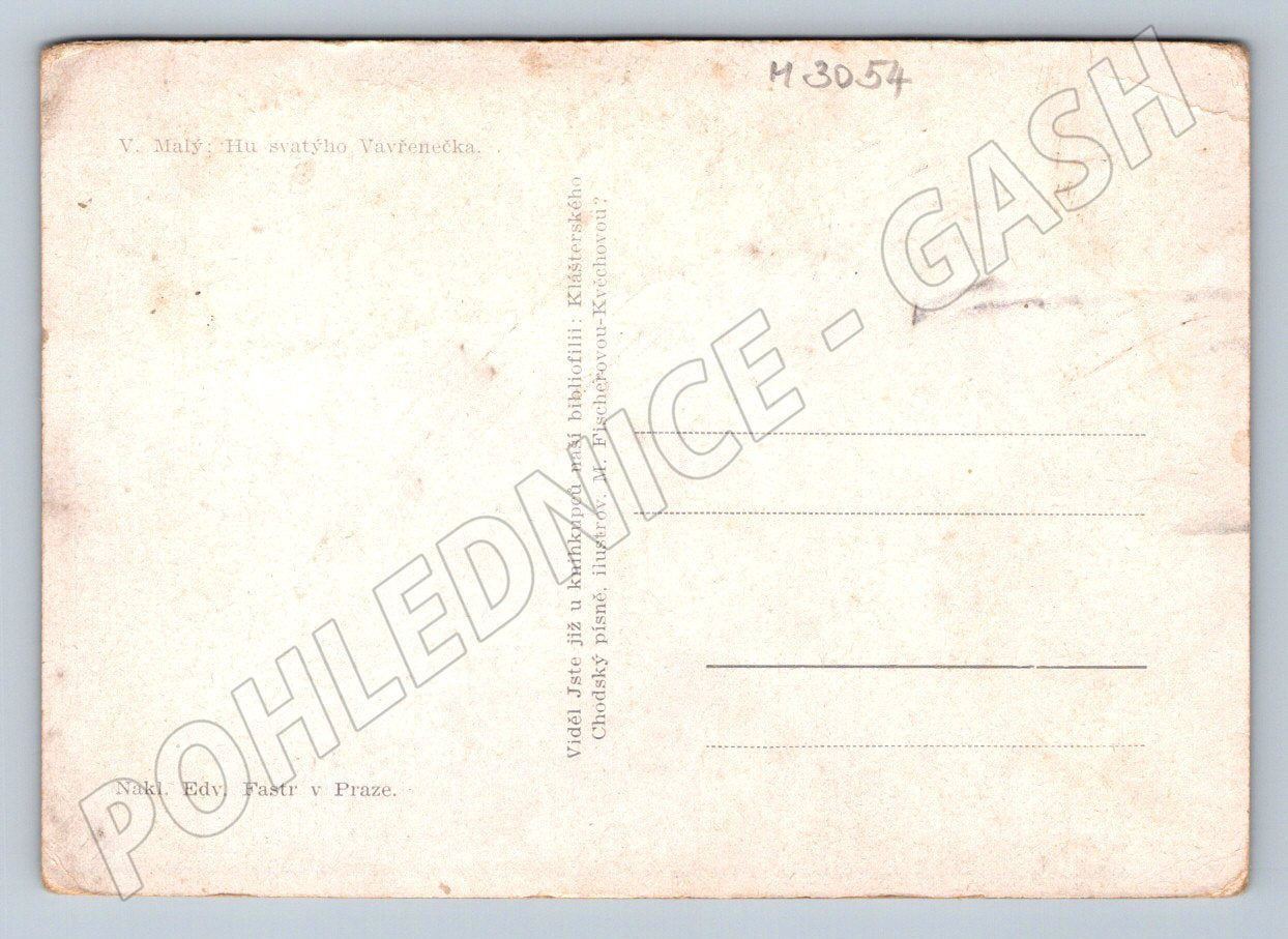 I am offering an old postcard with the motif of a folk gathering at St. Lawrence's. The postcard shows a scene from a festival or pilgrimage, where many people in traditional costumes can be seen sitting, talking and enjoying a social event in a natural environment among the trees. The postcard comes from the Edv. Fastr publishing house in Prague and is marked on the back with the text V. Malý - Hu svatýho Lavřineček. The condition of the postcard is visually preserved with traces of age, which makes it an interesting collector's item of ethnographic significance. An ideal addition to a collection of postcards depicting Czech folk culture and traditions.
