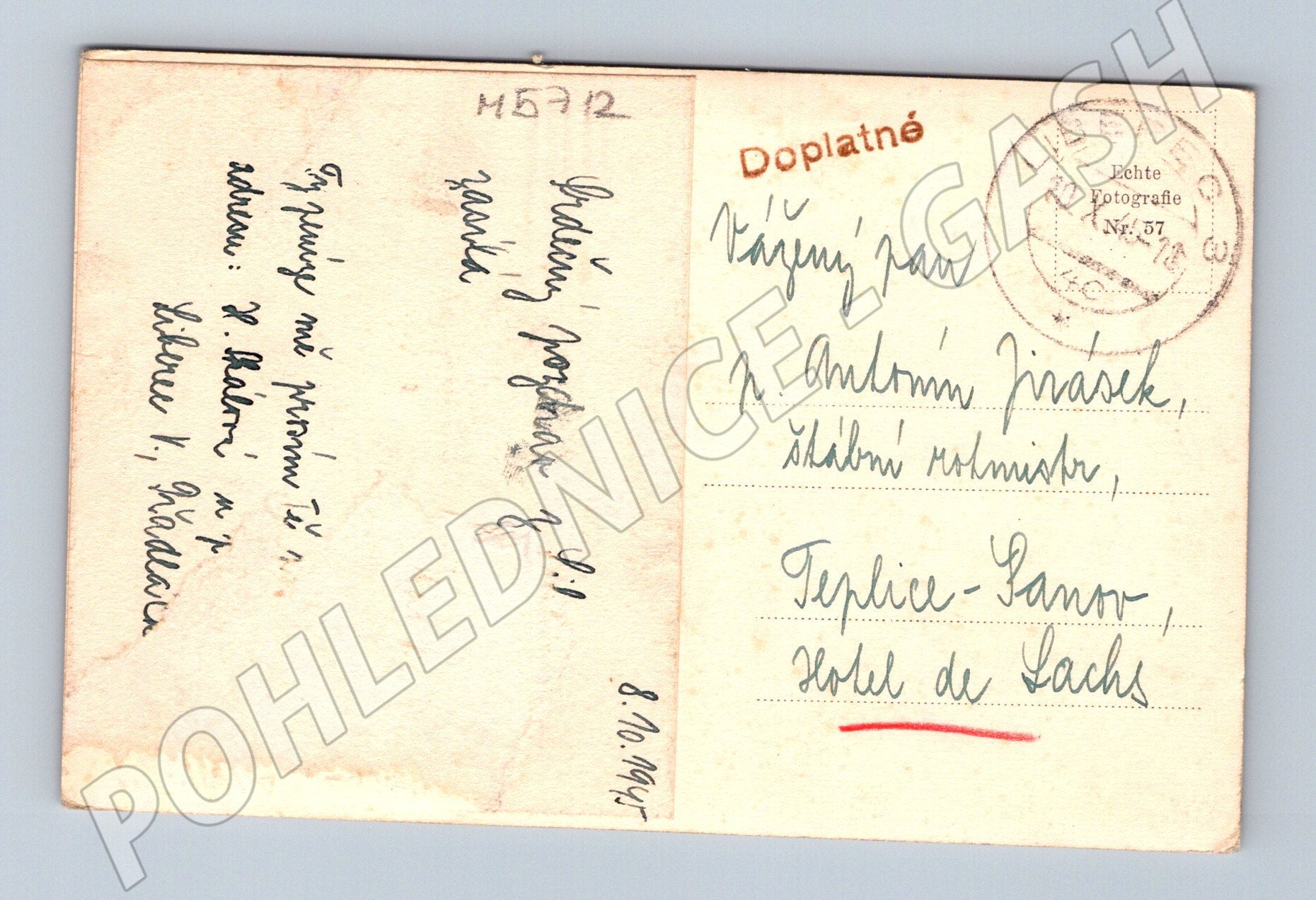Original old postcard depicting the town hall in Liberec with a view of the square and historic cars from the first half of the 20th century. The postcard is printed in the form of a real photograph (Echte Fotografie) and on the back bears handwritten text, a stamp from Liberec and period postage stamps with the designation Doplňky. Overall condition corresponds to its age, nice period preservation. A great collector's item depicting the architecture and atmosphere of pre-war Liberec!
