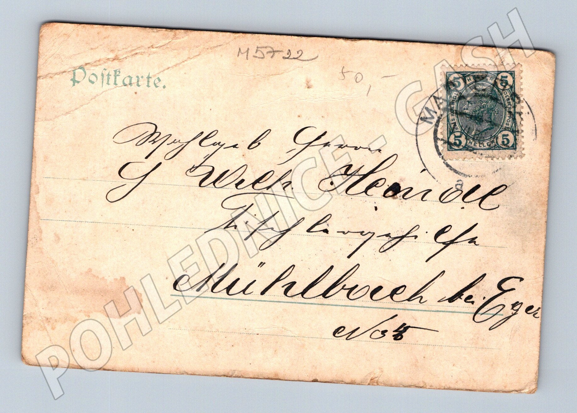 Historical postcard from Mariánské Lázně (Marienbad) depicting Franz-Josefs-Platz. The postcard has a pre-war format and a classic period look, on the front side there is a park with a fountain and surrounding buildings, typical of spa architecture of the early 20th century. On the edge there is a prominent red marking Marienbad and Franz-Josefs-Platz. On the back side there is a handwritten text, address and a stamp from Austria-Hungary with a postmark. The postcard is in original condition with a patina corresponding to its age, which proves its authenticity and collector's potential. A great piece for a collection of historical postcards of Czech spa towns.