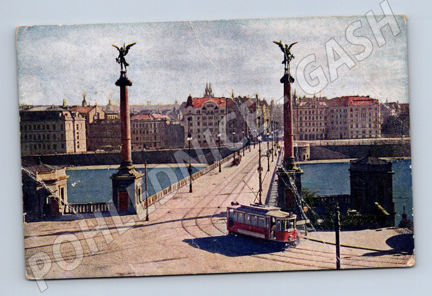 Prague - Svatopluk Bridge with tram, old postcard