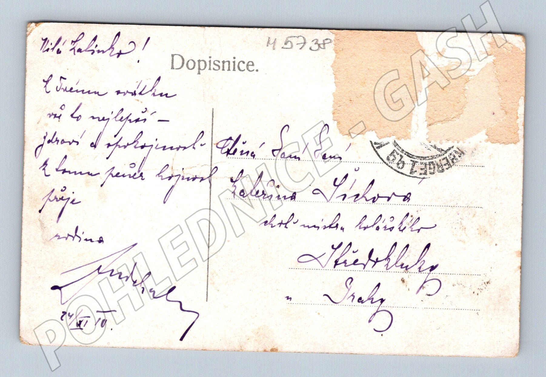 A historical postcard with a Prague motif, with an overall view of the Old Town mills across the Vltava River. The front side beautifully depicts the historical buildings of the Old Town, including churches and towers, and the calm surface of the river, which reflects the city panorama. The back side contains a handwritten message and postal service marks, the postcard was actually sent, which is interesting for collectors. The postcard is in good condition with minor signs of age on the edges. It is a small format, probably from the first half of the 20th century (dated 1911). A great addition to a collection of historical postcards of Prague and old postal correspondence.
