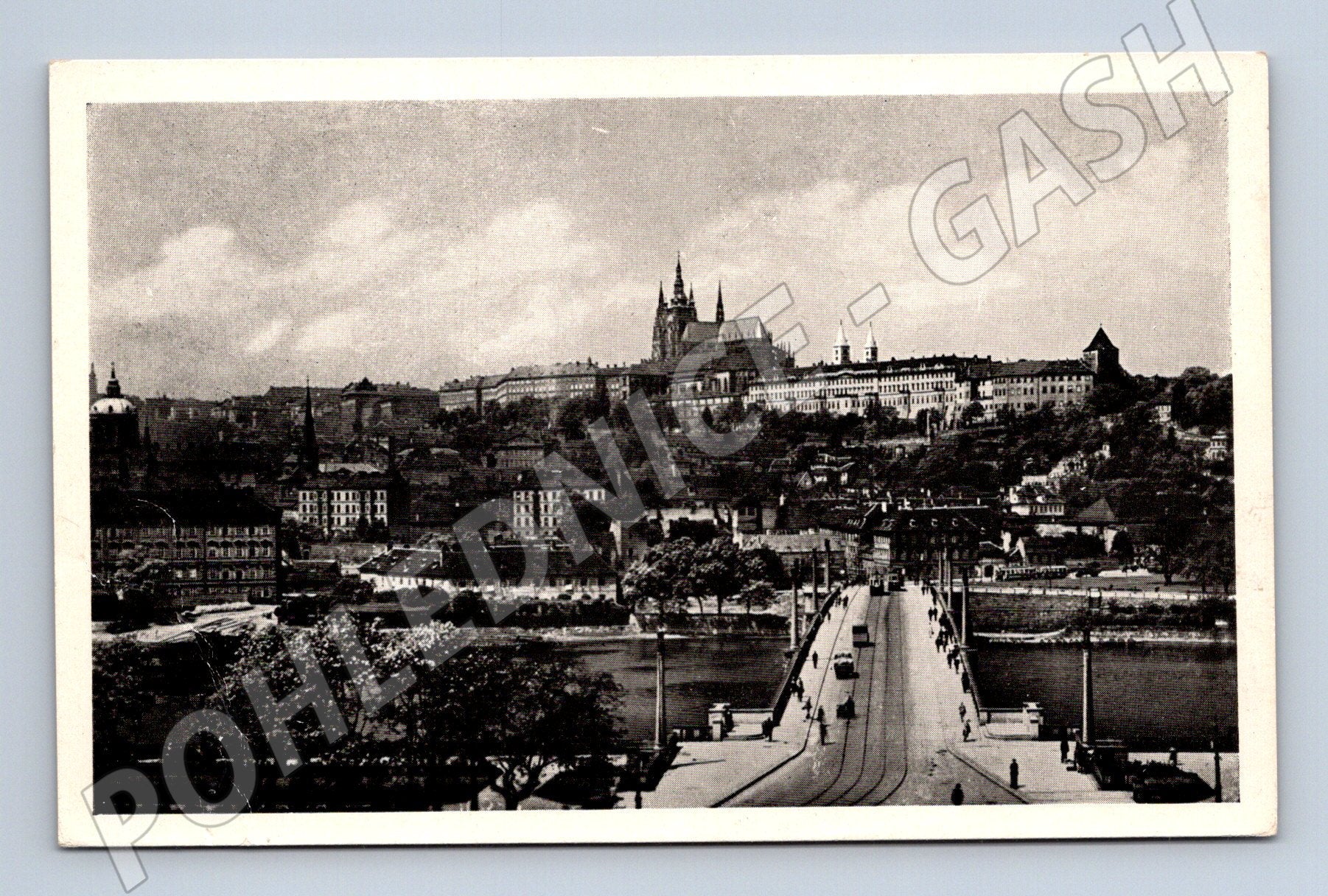 Prague - Hradčany and Mánes Bridge, old black and white postcard
