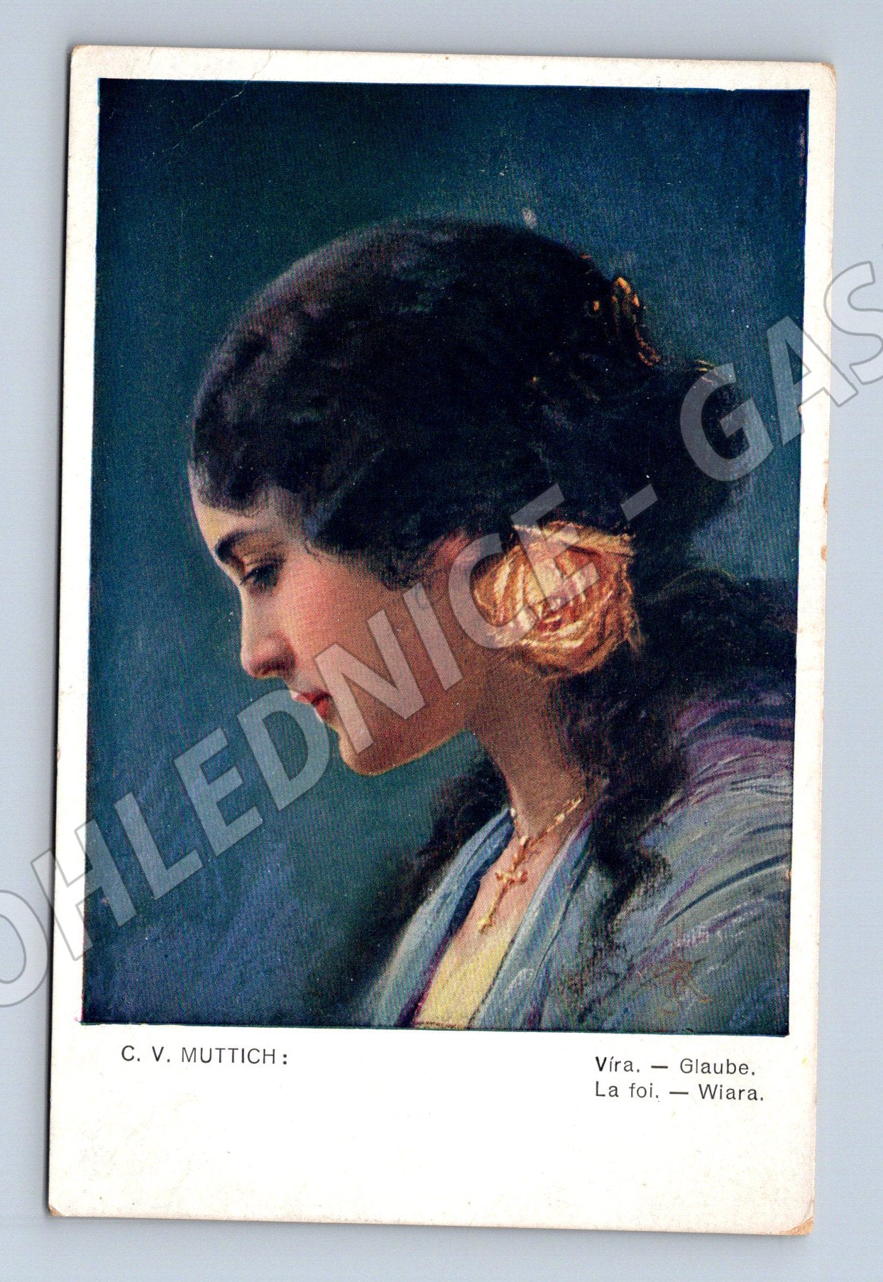 Pohlednice Víra – portrét ženy, C. V. Muttich, malířství