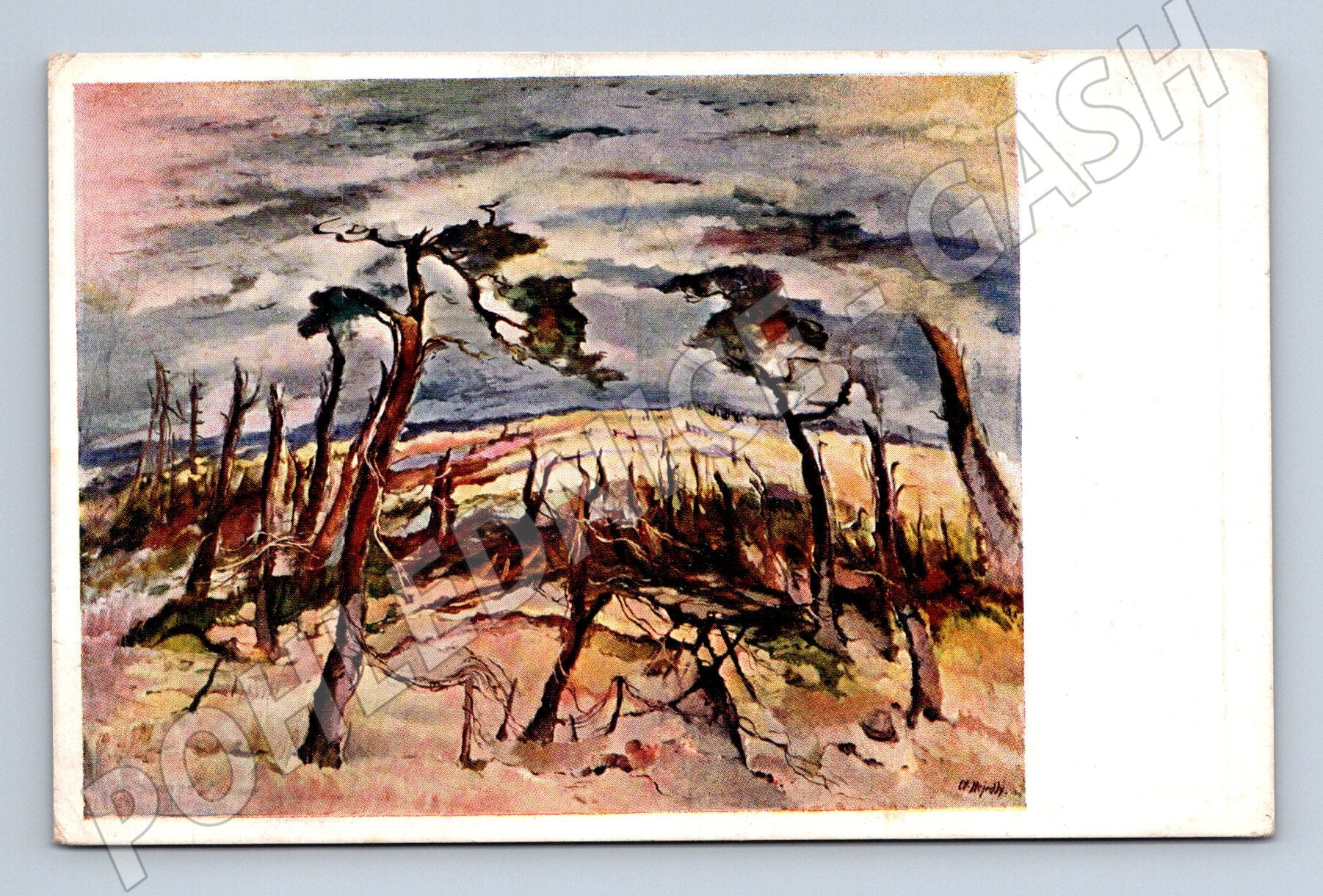 Originální historická pohlednice z edice Francouzská a italská bojiště čsl. legií s názvem Tahure od malíře O. Nejedlého. Pohlednice zachycuje dramatickou krajinu bitevního pole ve Francii, kde bojovali českoslovenští legionáři během první světové války. Na lícové straně je výrazná malířská kompozice s poničenými stromy a zamračenou oblohou, která evokuje atmosféru války. Zadní strana nese popis ve třech jazycích a je opatřena místem pro adresu i značkou vydavatele. Skvělý sběratelský kousek pro milovníky legionářské historie a českých pohlednic z období první republiky. Stav viz foto, běžné známky stáří.