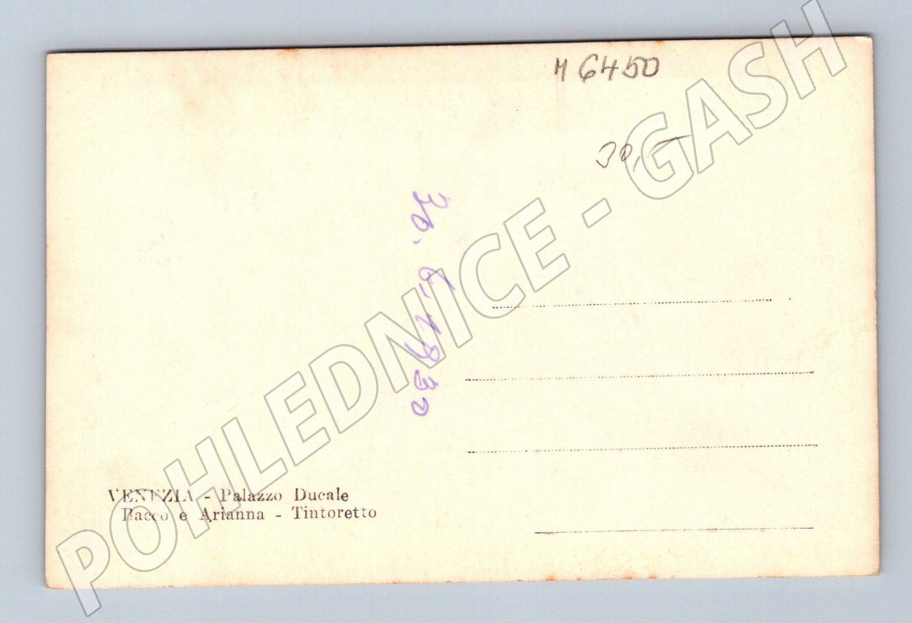 Originální stará pohlednice s černobílou reprodukcí slavného obrazu Bacchus a Arianna od malíře Tintoretta, vystaveného v paláci Palazzo Ducale v Benátkách. Na přední straně je vyobrazen mytologický výjev s postavami Baccha, Arianny a další postavou. Zadní strana je neprošlá, s popisem: VENEZIA - Palazzo Ducale, Bacco e Arianna - Tintoretto . Pohlednice je ve velmi dobrém stavu, vhodná pro sběratele uměleckých pohlednic či jako inspirativní dekorační předmět. Možnost osobního předání nebo zaslání poštou.