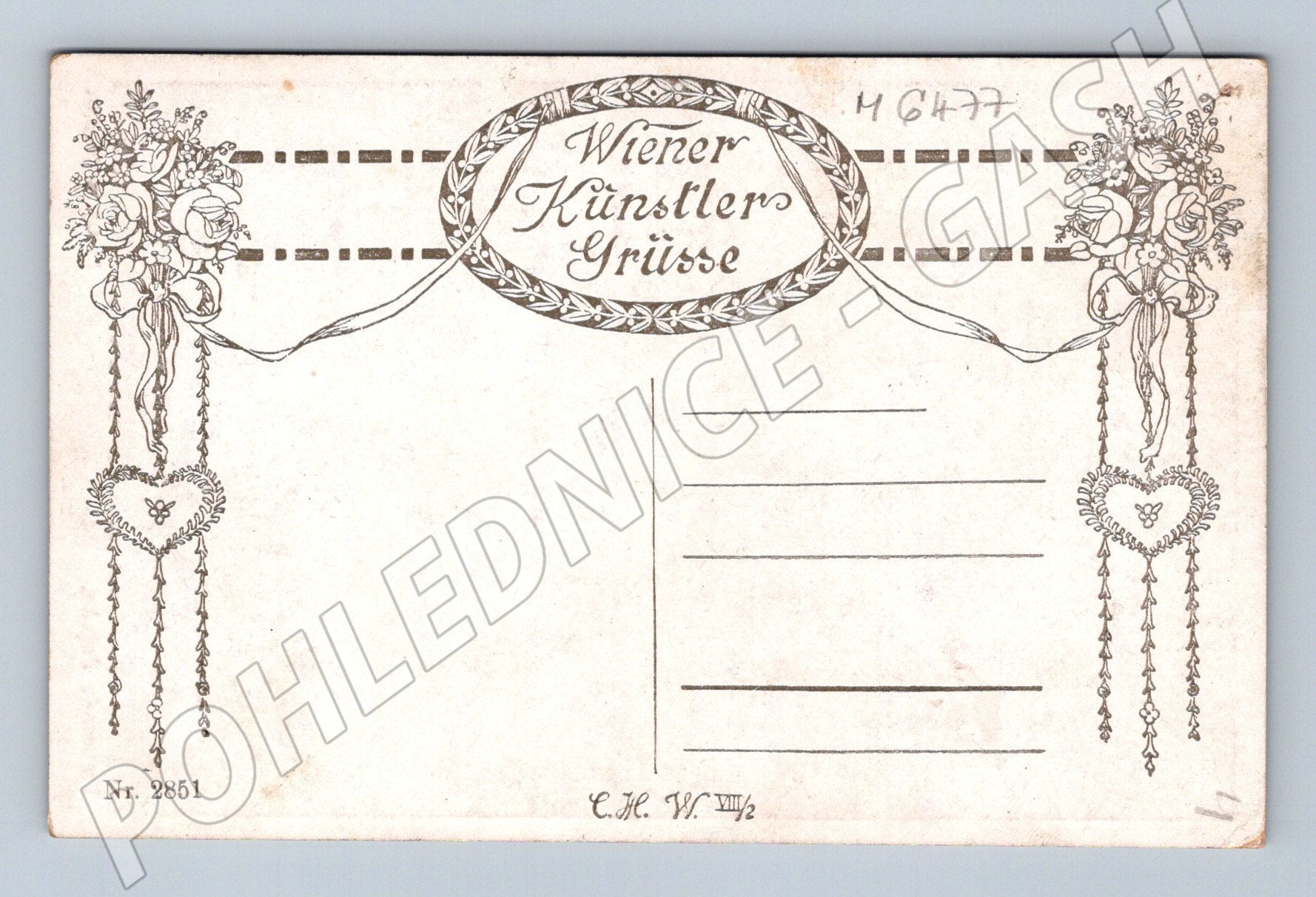 Originální stará pohlednice s názvem Trauernde Psyche (Truchlící Psyché) podle obrazu Prof. J. Straka. Výjev z antické mytologie zobrazuje polonahou ženskou postavu s motýlími křídly v interiéru s vázou a květinami. Zadní strana je s označením Wiener Künstler Grüsse , číslováno Nr. 2851. Pohlednice je v dobrém antikvárním stavu, bez textu, vhodná do sbírky uměleckých a romantických pohlednic z počátku 20. století. Velmi dekorativní a sběratelsky zajímavý exemplář.