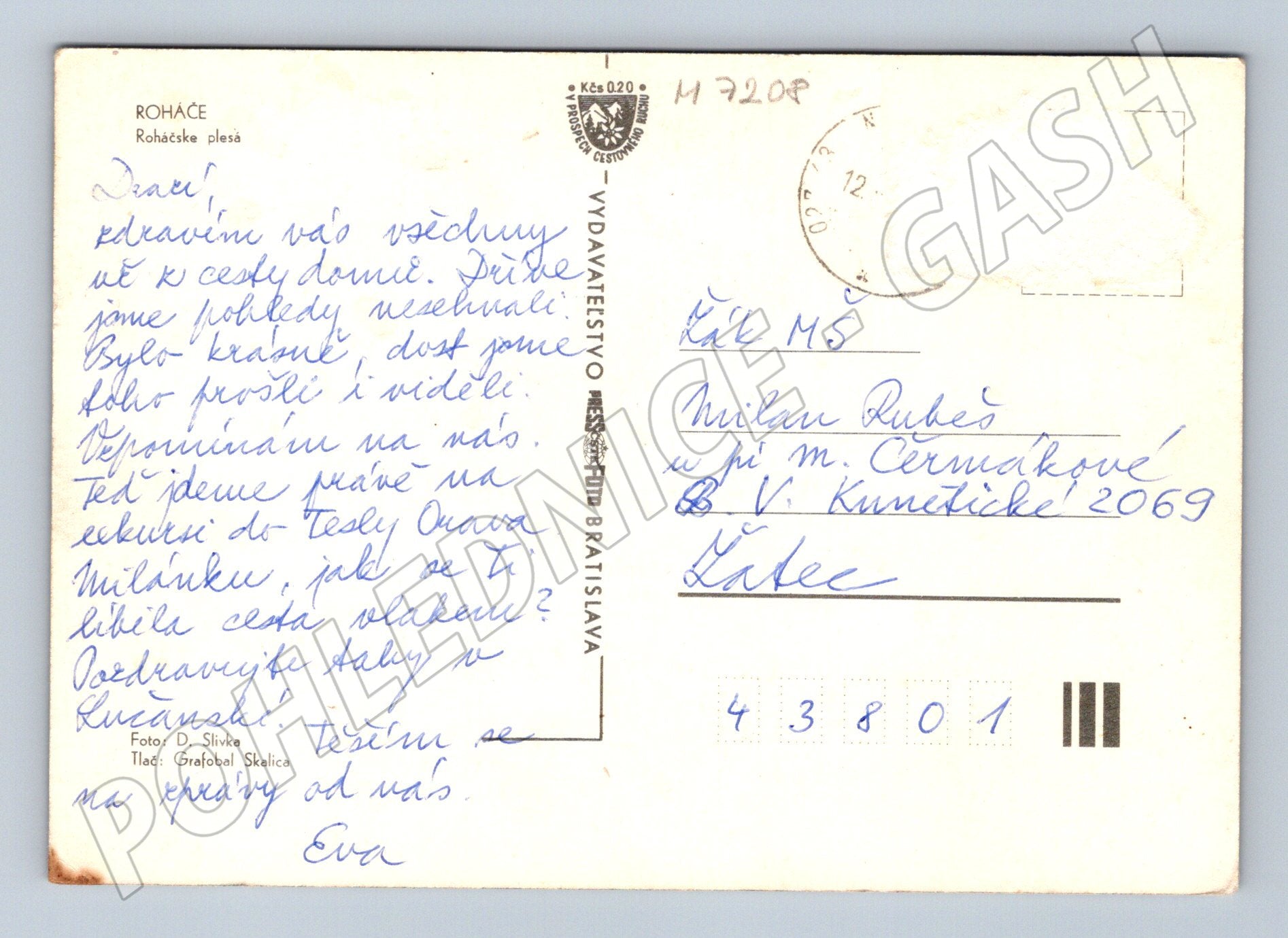 Originální pohlednice s motivem Roháčských ples v Západních Tatrách (Slovensko). Pohlednice je zachovalá, na přední straně je nádherný barevný snímek horské krajiny s jezery a úžasným výhledem na vrcholky hor. Na zadní straně je ručně psaný vzkaz a poštovní razítko. Vydavatel: Vydavatelstvo Obzor Bratislava, foto: D. Slivka. Skvělý sběratelský kousek zejména pro milovníky slovenských hor a tradičních pohlednic.