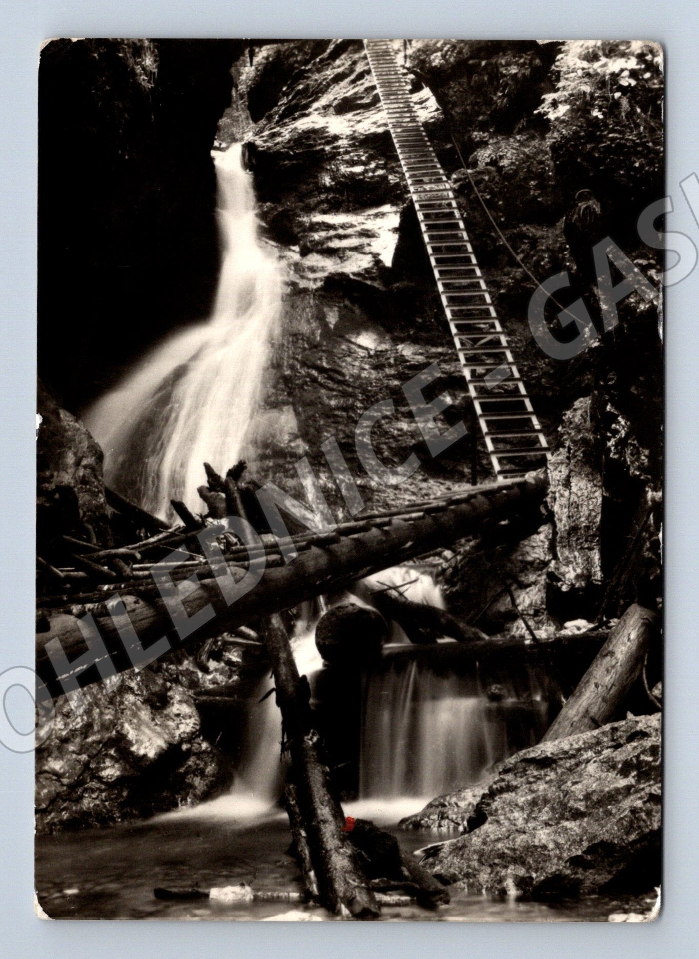 Nabízím originální černobílou pohlednici ze Slovenského ráje, konkrétně z rokliny Velký Sokol. Na přední straně je zachycen dramatický pohled na roklinu s železným chodníkem přes potok, fotografie od známého slovenského fotografa Rudolfa Helexy. Na zadní straně je poštovní známka z období Československa (Košice, 30 h), razítko a ručně psaný text. Pohlednice je ve velmi dobrém stavu, rohy jsou mírně opotřebované, jinak bez vážných závad. Ideální sběratelský kousek pro milovníky Slovenska, historických pohlednic a přírodních krás.