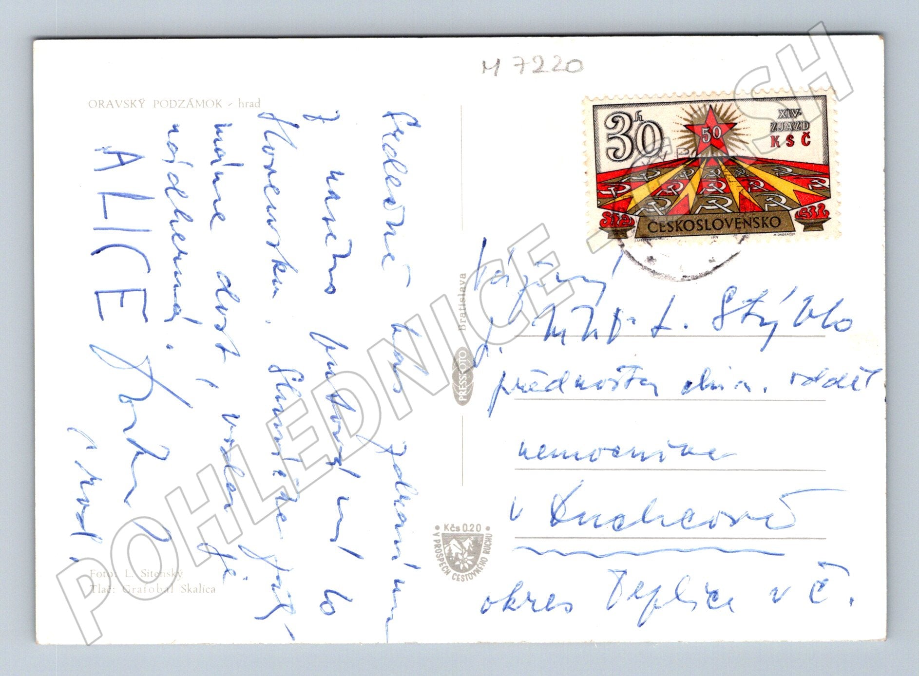 Nabízím originální pohlednici s motivem Oravského hradu, který se tyčí na skále nad řekou Oravou. Jedná se o krásnou barevnou pohlednici, která zachycuje pohled na hrad z dálky přes řeku s kameny v popředí. Na zadní straně pohlednice je ručně psaný text, známka a poštovní razítko z bývalého Československa. Pohlednice je v pěkném zachovalém stavu, drobné známky stáří a manipulace. Skvělá sběratelská položka pro milovníky historických památek a slovenských hradů. Autorem fotografie je L. Sitenský, tisk Grafobal Skalica.