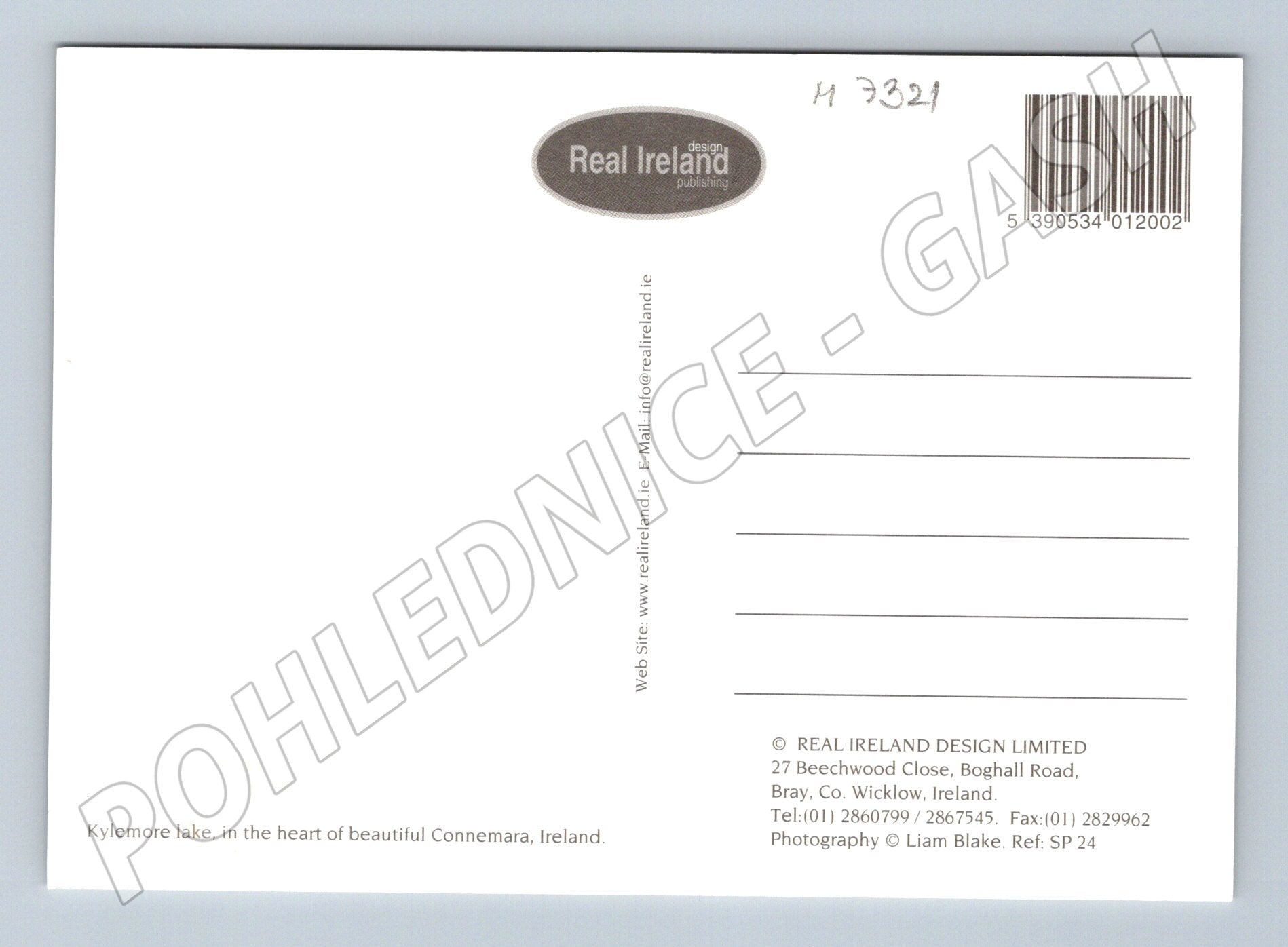 Originální pohlednice zobrazující malebné jezero Kylemore v srdci kouzelné oblasti Connemara v Irsku. Na fotografii od Liama Blakea je zachycena nádherná krajina s jezerem, zelenými horami a typickou venkovskou architekturou. Pohlednice neprošlá poštou, ve vynikajícím stavu, vhodná pro sběratele i milovníky Irska. Vydavatel: Real Ireland Design Limited, rozměr klasický. Skvělý tip na rozšíření sbírky pohlednic ze světa.
