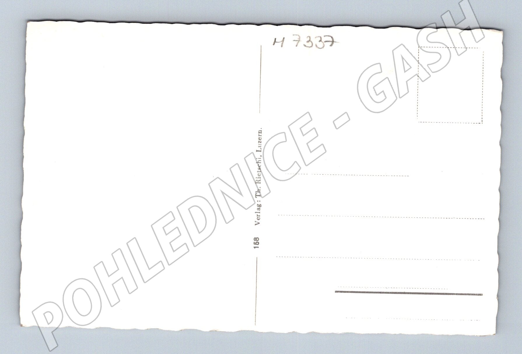 Originální černobílá pohlednice legendárního Kapličkového mostu (Kapellbrücke) ve švýcarském Luzernu, postaveného v roce 1333. Pohlednice zachycuje vnitřní pohled na dřevěnou zastřešenou konstrukci mostu, která je významnou historickou památkou. Na mostě jsou vidět i proslulé trojúhelníkové malby. Atraktivní okraj se zubatým řezem. Zadní strana je čistá, lehce označená číslem, nevypisovaná a bez známky. Perfektní sběratelský kousek pro milovníky historických památek a švýcarských reálií. Rozměry cca 14 x 9 cm, vydavatel: Th. Biesch, Luzern, č. 168.