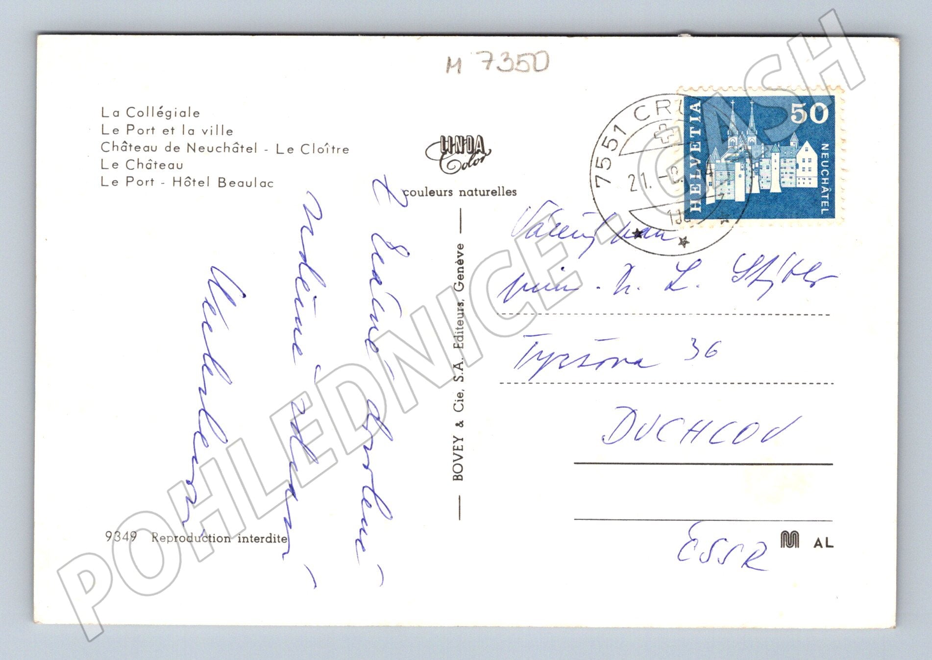 Pohlednice Švýcarsko Neuchâtel – koláž, prošlá poštou