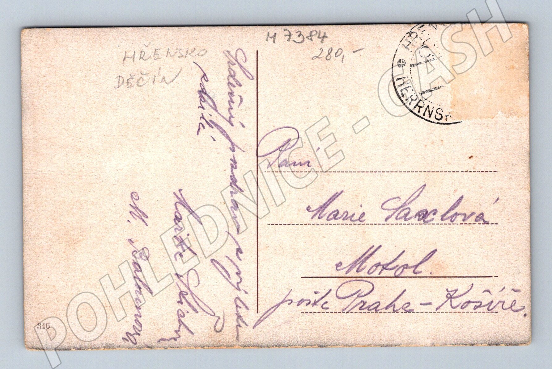 Starý černobílý pohled z Edmundovy soutěsky (Edmundsklamm) v Českém Švýcarsku (Böhm. Schweiz), zachycující pramici projíždějící soutěskou s vybíráním vody a nádhernou atmosférou této přírodní scenérie. Jedná se o velmi pěkně zachovalou pohlednici s ručně psaným pozdravem a adresou na zadní straně, odeslanou z Hřenska. Rozměr pohlednice odpovídá malému formátu a datace je přibližně první polovina 20. století. Pohlednice je vhodná do sbírky zaměřené na historické pohledy z Čech, zejména Českého Švýcarska a Děčínska.